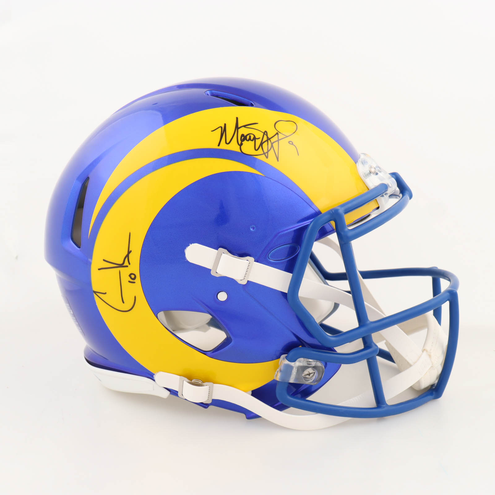 Riddell Los Angeles Rams full-size authentic on-field Speed helmet. Hand-signed by Matthew Stafford and Cooper Kupp.