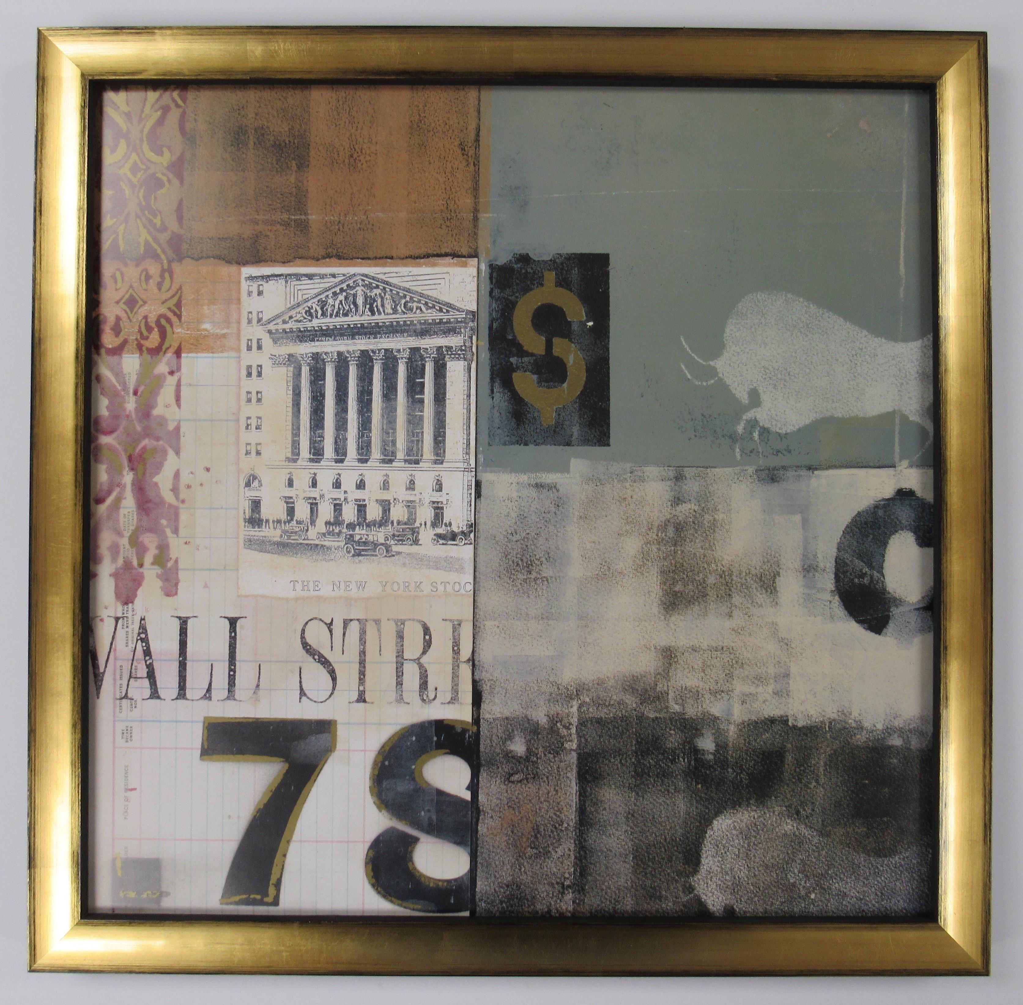 Custom frame measures approximately 22" x 22" in size and features a Wall Street custom art print.