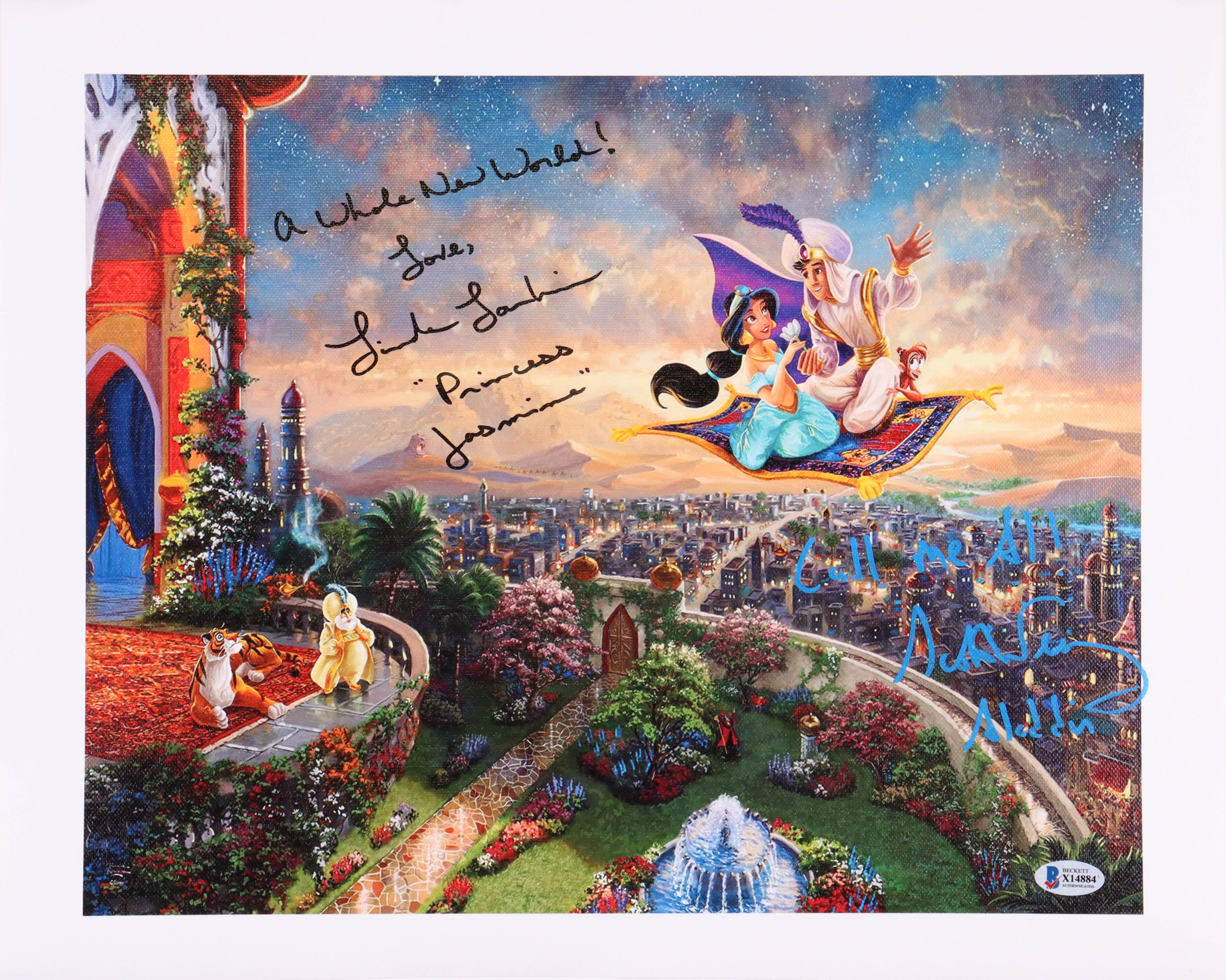 Linda Larkin Signed "Aladdin" 14x18 Print On Canvas Inscribed "A Whole New World", "Princess Jasmine" & "Love," (Beckett)