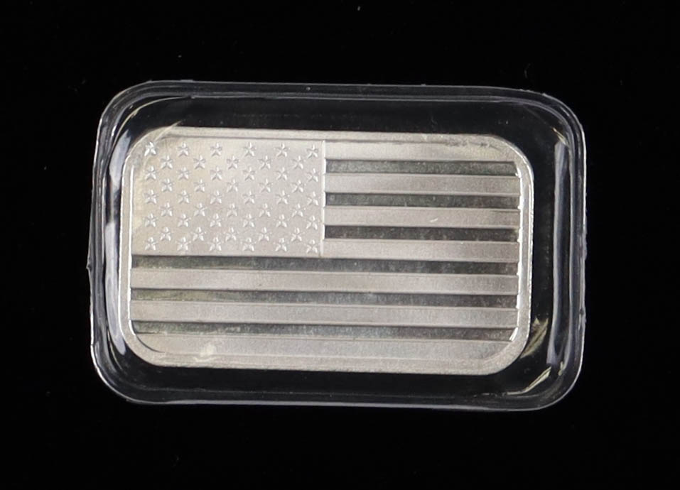 1 Oz .999 Fine Silver "American Flag" Bullion Bar