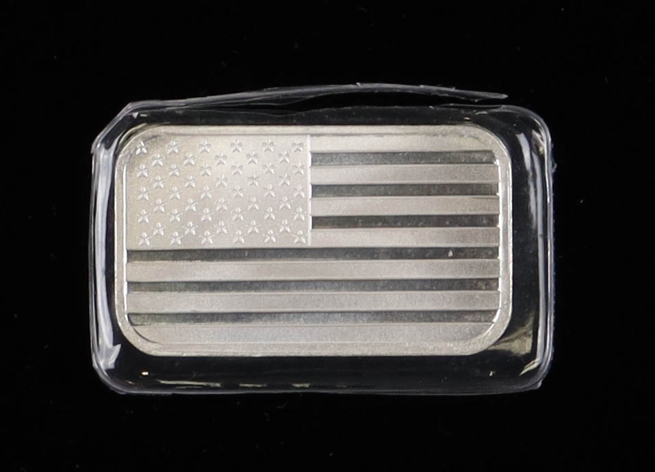 1 Oz .999 Fine Silver "American Flag" Bullion Bar
