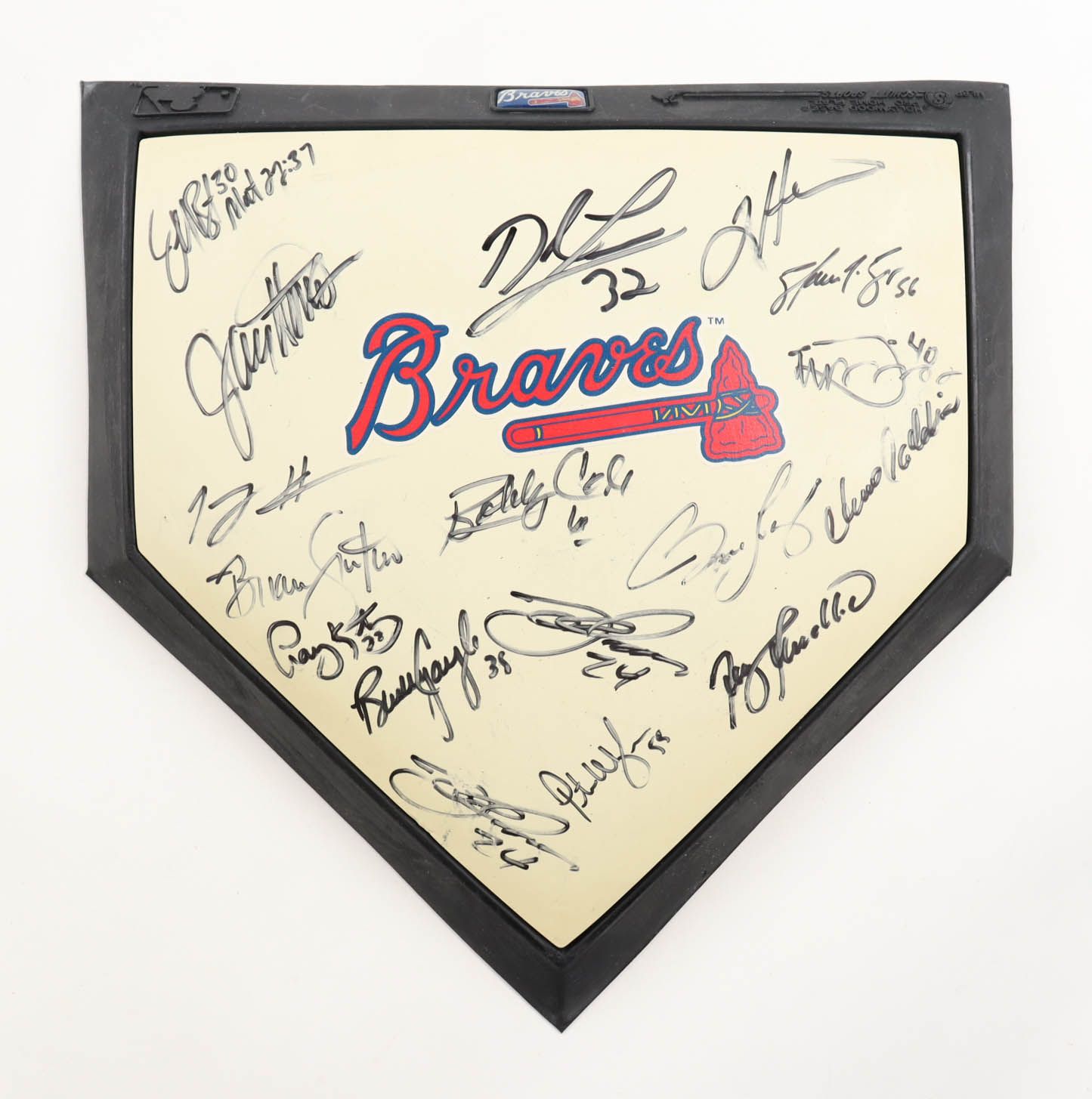 Atlanta Braves home plate. Hand-signed by Bobby Cox, Tim Hudson, Brian Snitker, Buddy Carlyle, Jeff Bennett, Peter Moylan, and (11) others.