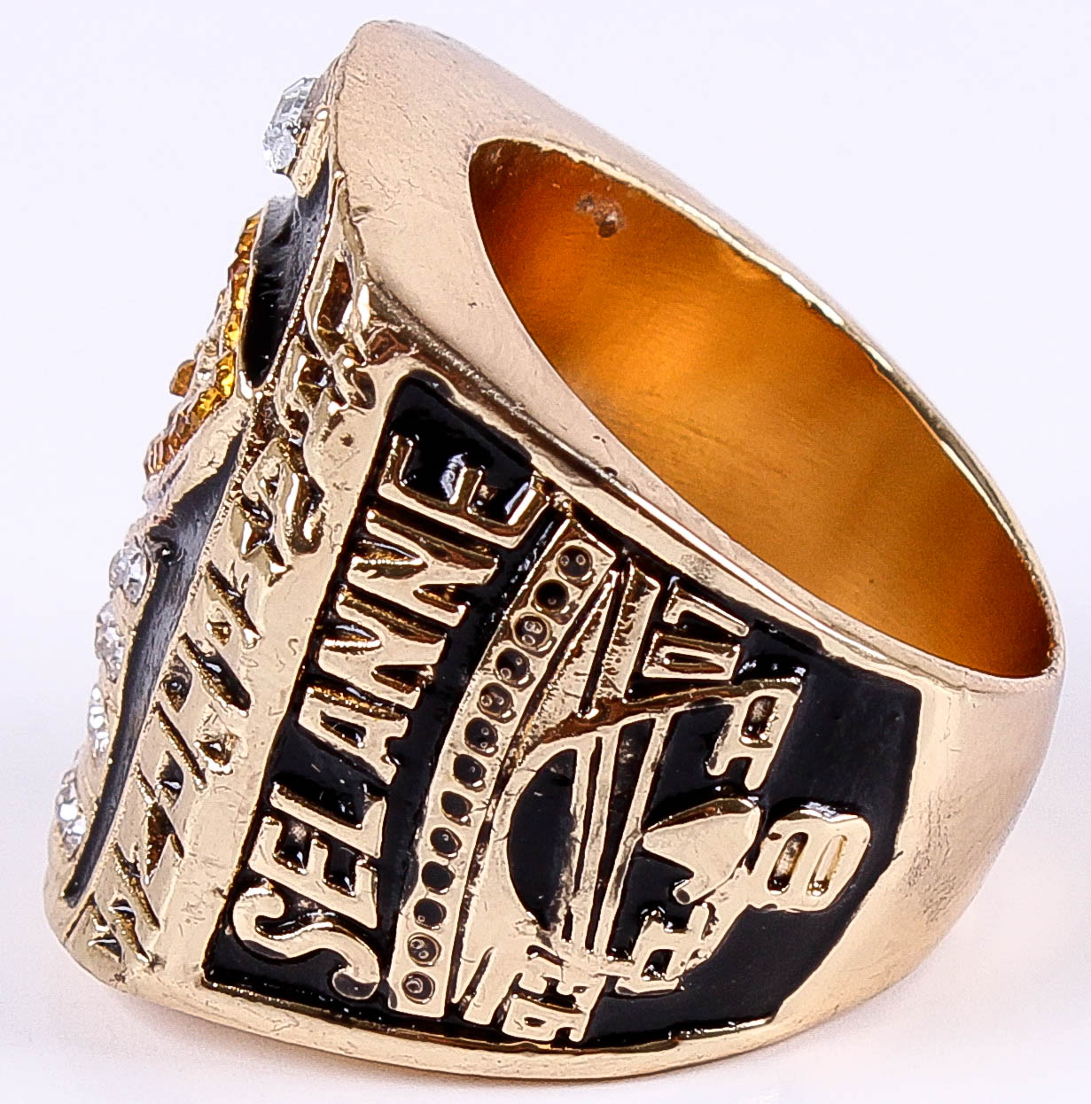 Teemu Selanne Ducks High Quality Replica 2007 Stanley Cup Championship Ring. The ring has been hand crafted by professional jewelers. Made of metal alloy and clad with 18k gold. Size 12.