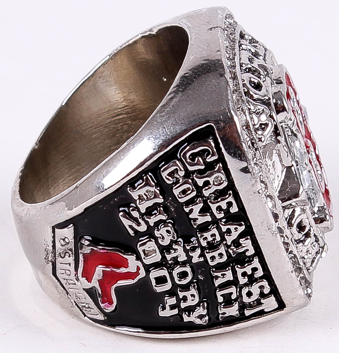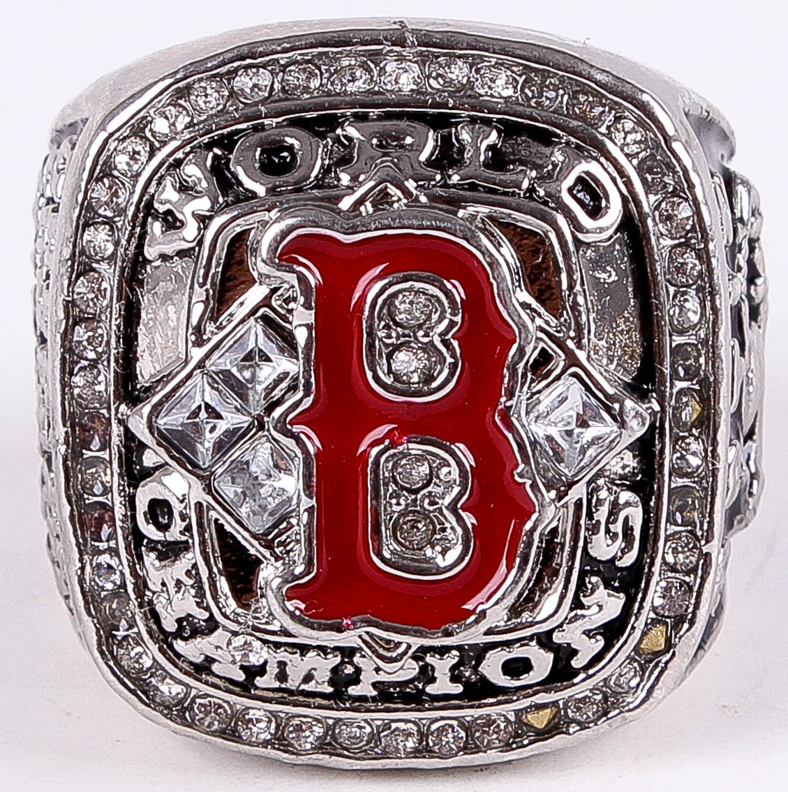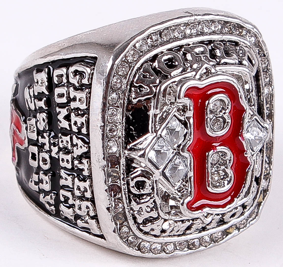 David Ortiz Red Sox High Quality Replica 2004 World Series Ring (High Quality Replica). The ring has been hand crafted by professional jewelers. Made of metal alloy and clad with Silver. Size 11.5.