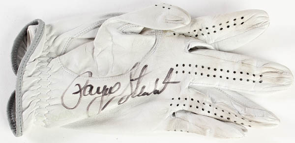 Top Flite golf glove has been hand-signed in black felt-tip pen by Payne Stewart (D. 1999).