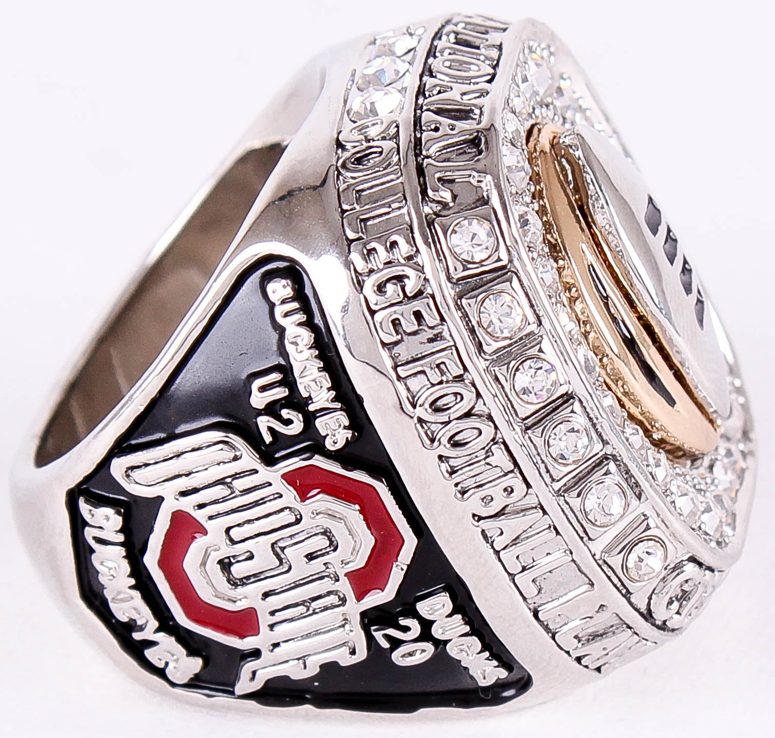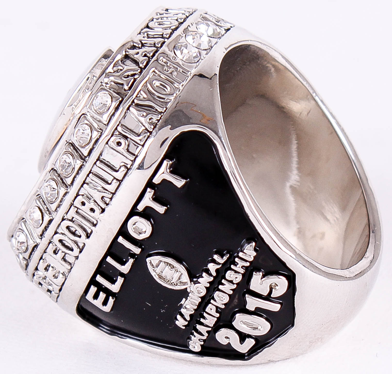 Ezekiel Elliott Ohio State Buckeyes Quality Replica 2015 National Champions Ring. The ring has been hand crafted by professional jewelers. Made of metal alloy and clad with silver. Size 11.