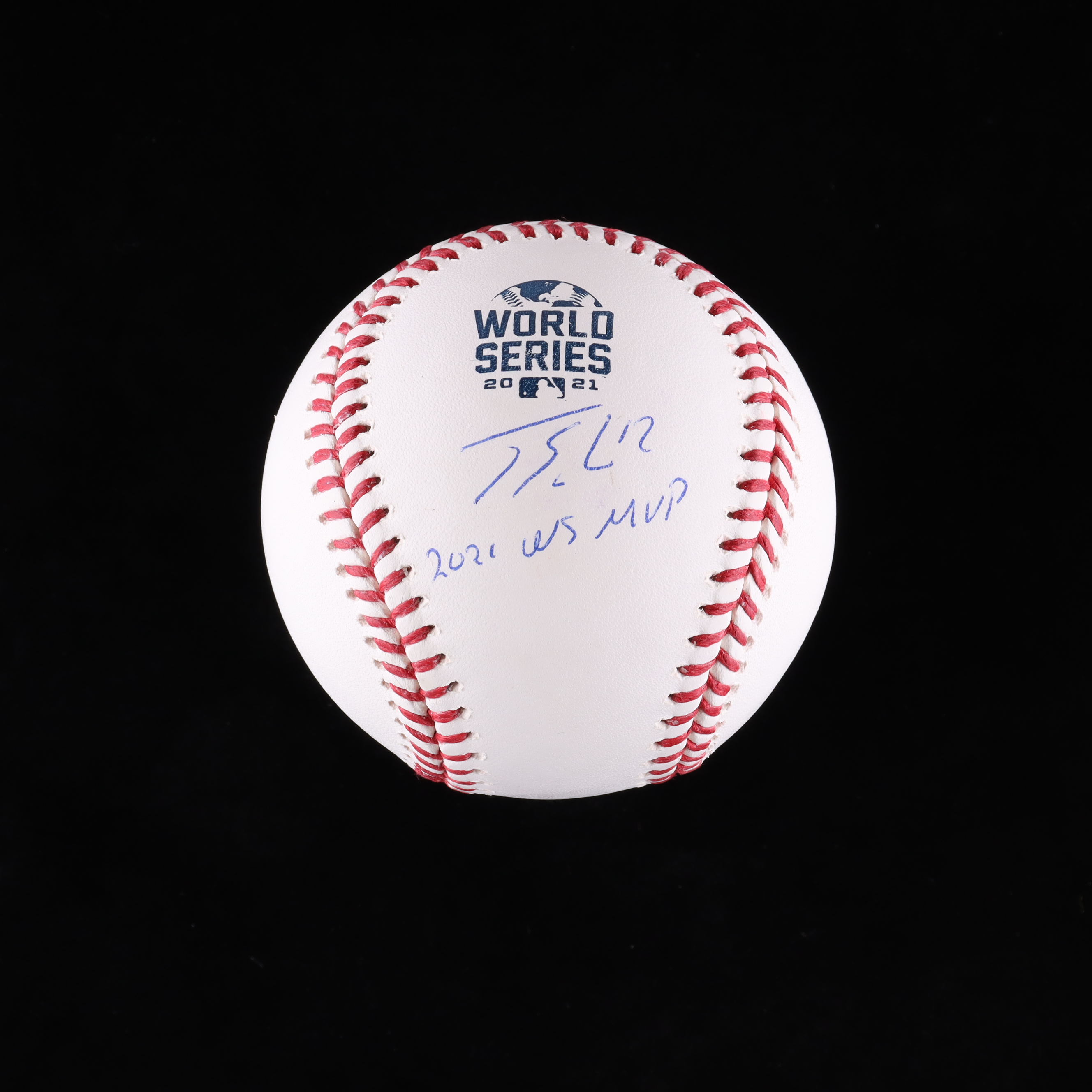Rawlings Official 2021 World Series Logo Baseball. Hand-signed and inscribed by Jorge Soler (Atlanta Braves).