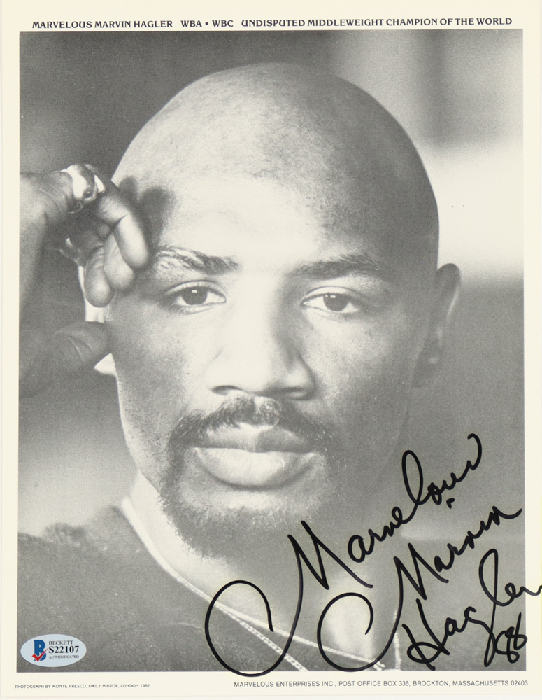 "Marvelous" Marvin Hagler Signed 8x10 Photo Inscribed "88" (Beckett)
