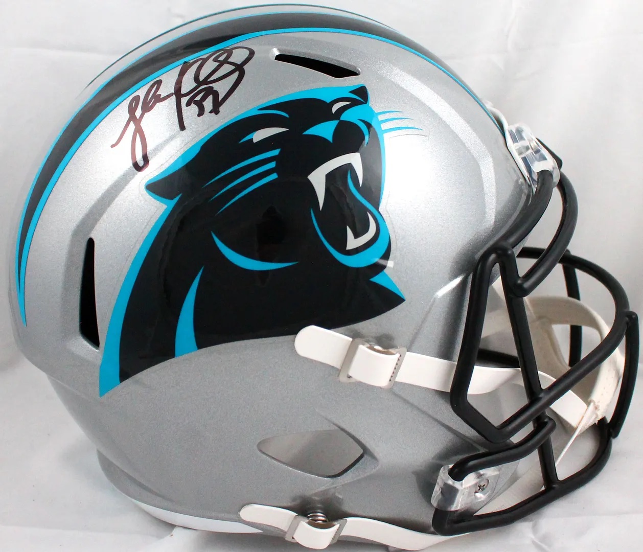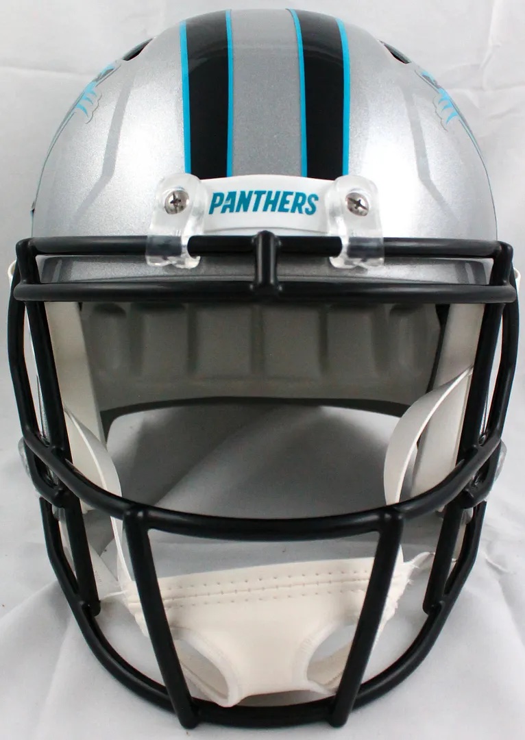 Riddell Carolina Panthers full-size replica Speed helmet. Has been hand-signed by Luke Kuechly.