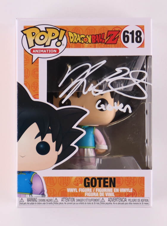 Funko Pop! figure measures approximately 4" tall has been hand-signed and inscribed on the packaging by Kara Edwards (Goten).