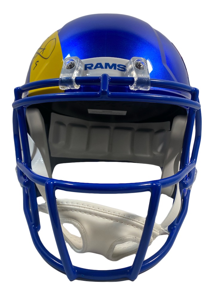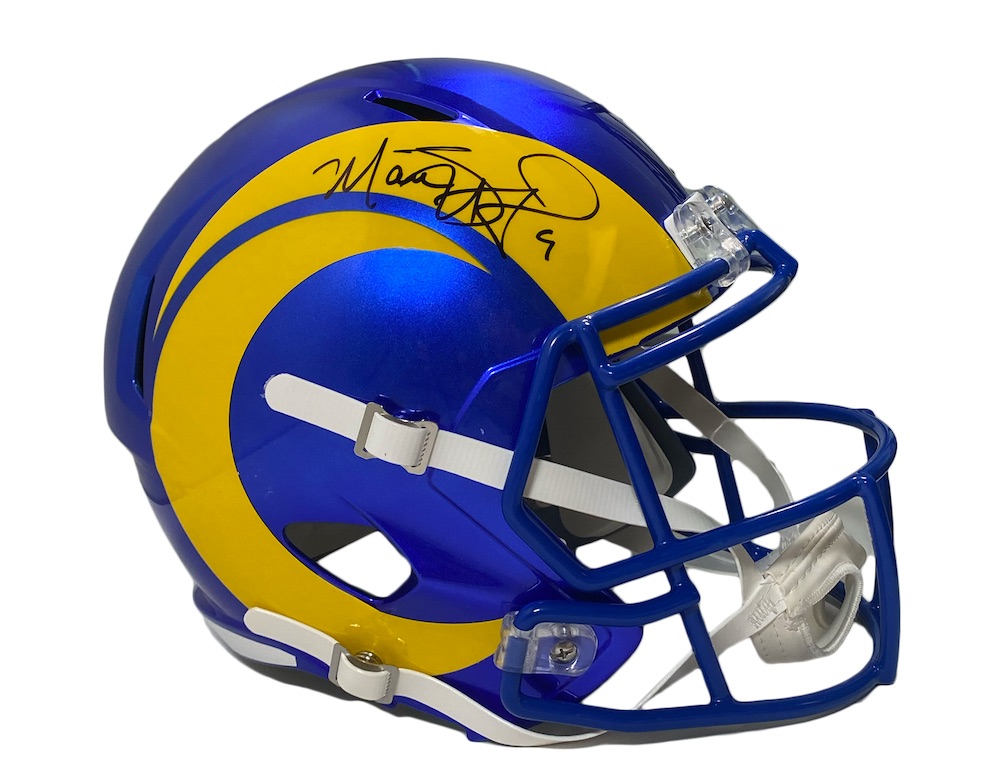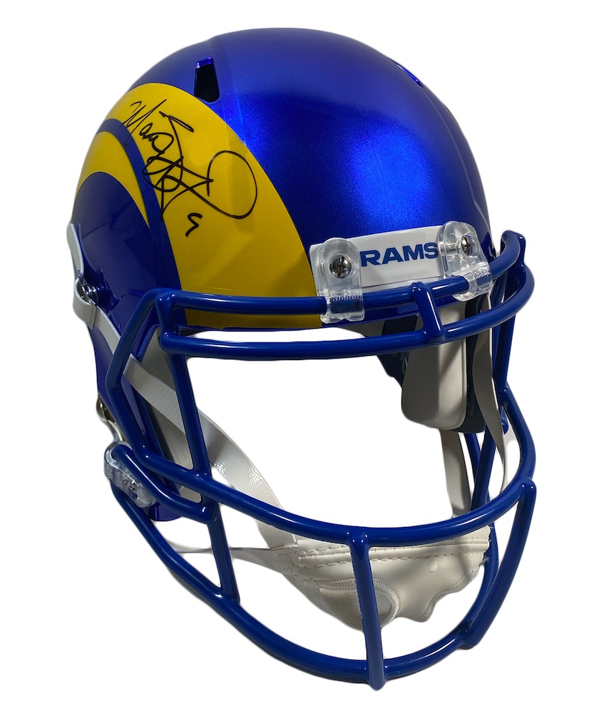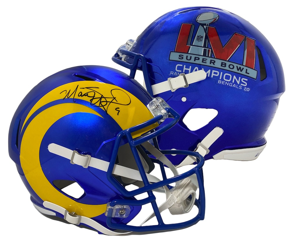 Riddell Los Angeles Rams Super Bowl LVI Champions logo full-size replica Speed helmet. Hand-signed by Matthew Stafford.