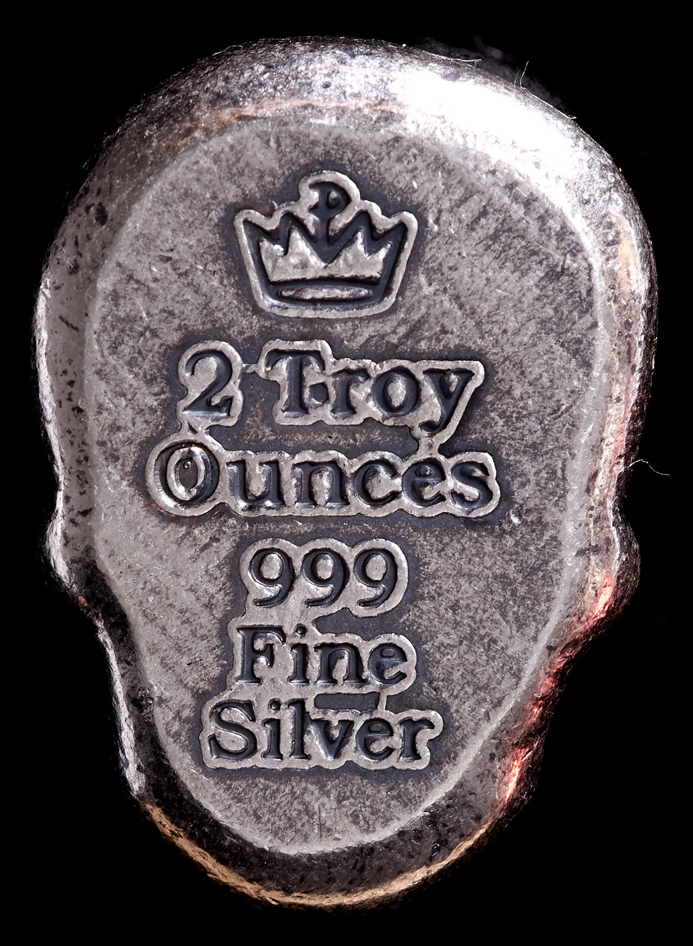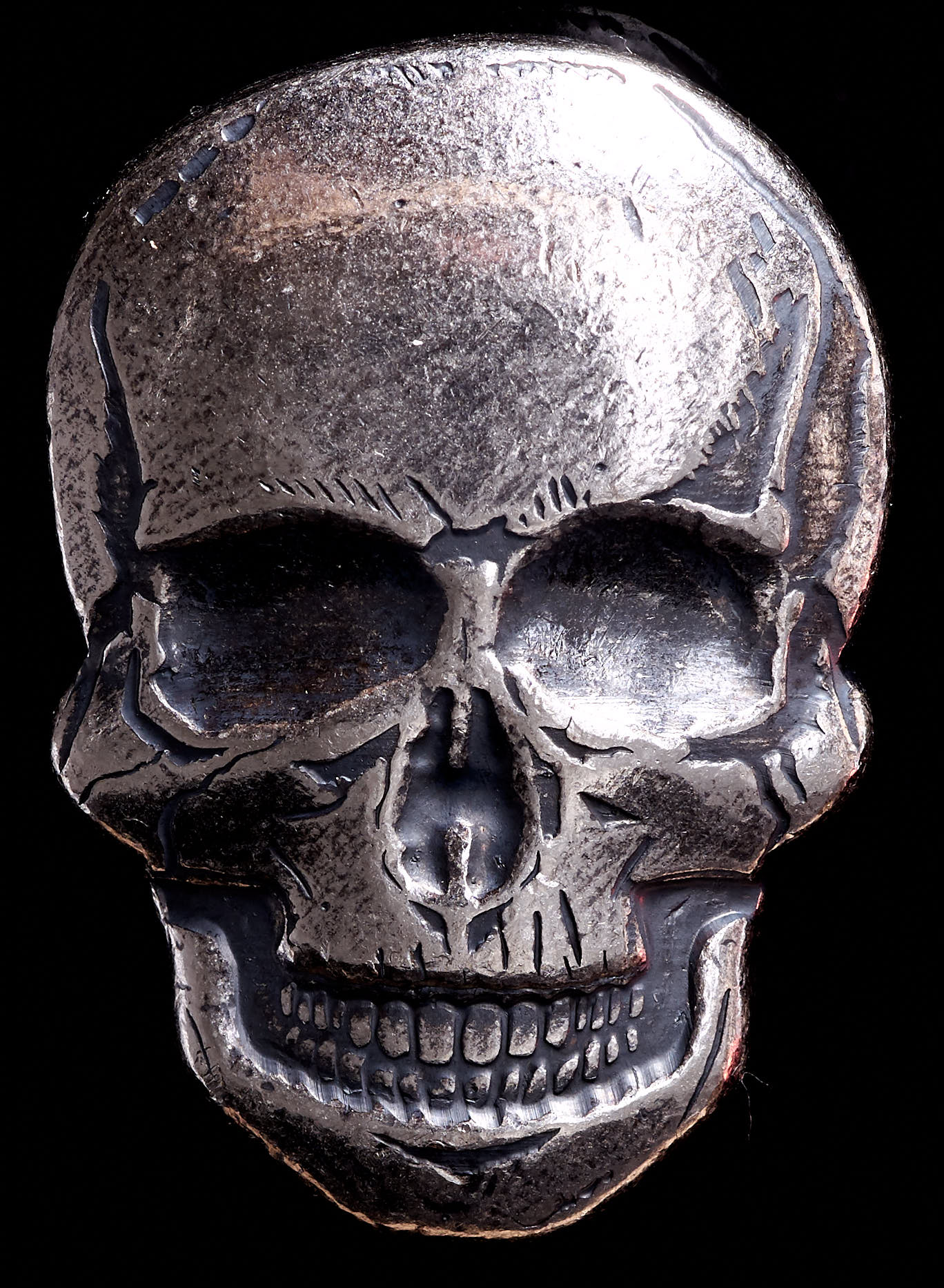 2 oz Silver Skull Monarch Hand-Poured 3D .999 Fine Silver Bar with Antique Finish