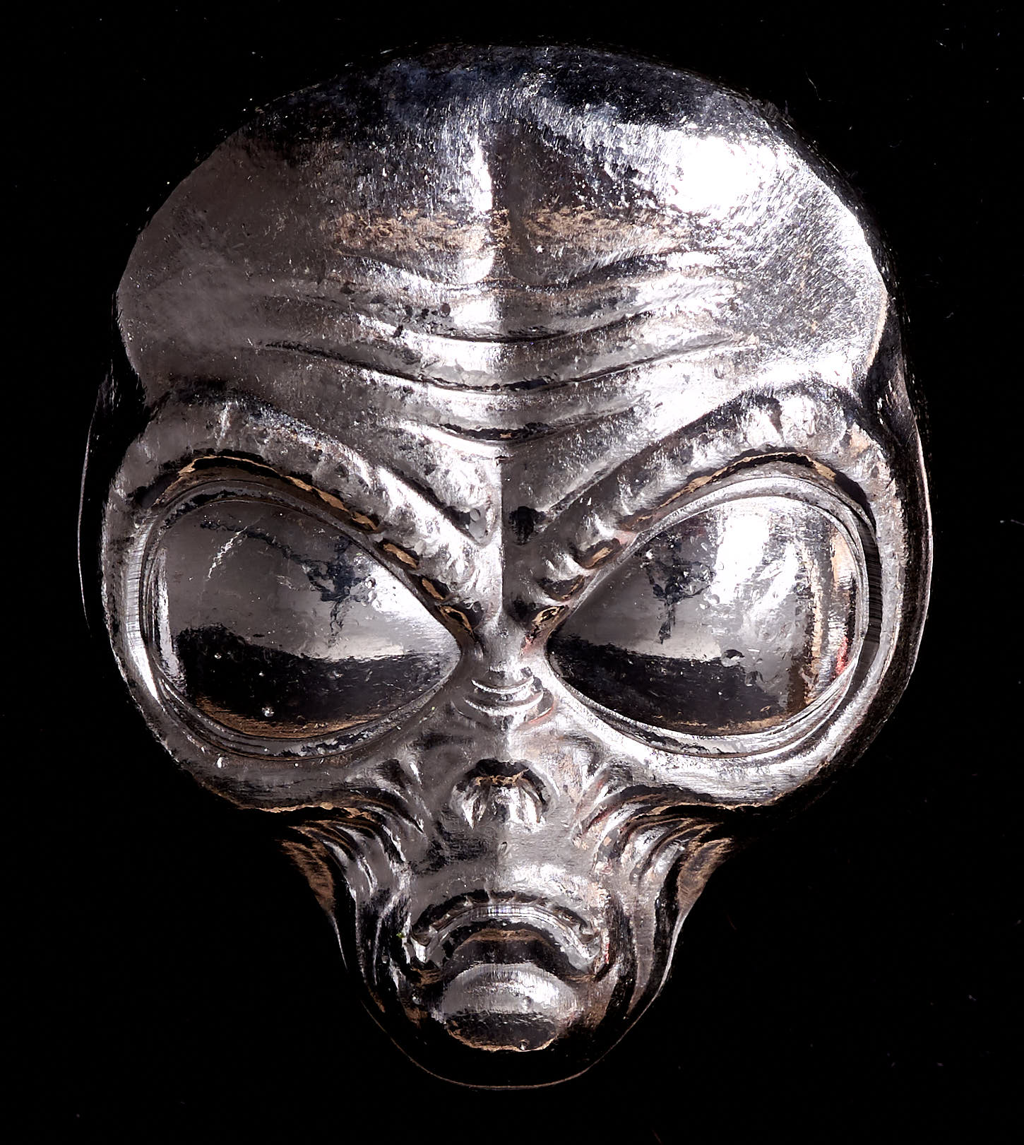 2 oz Silver Alien Head Monarch Hand-Poured 3D .999 Fine Silver Bar