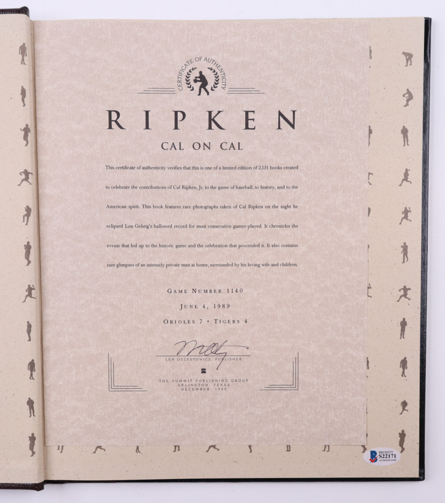 Cal Ripken Jr. Signed "Cal On Cal" Hardcover Book (Beckett)