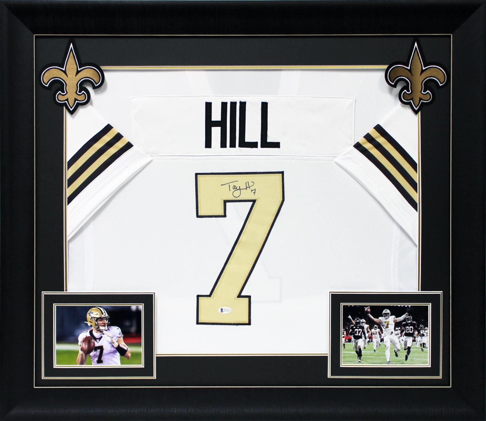 Custom frame measures approximately 32" x 37" in size and features a jersey hand-signed by Taysom Hill.
