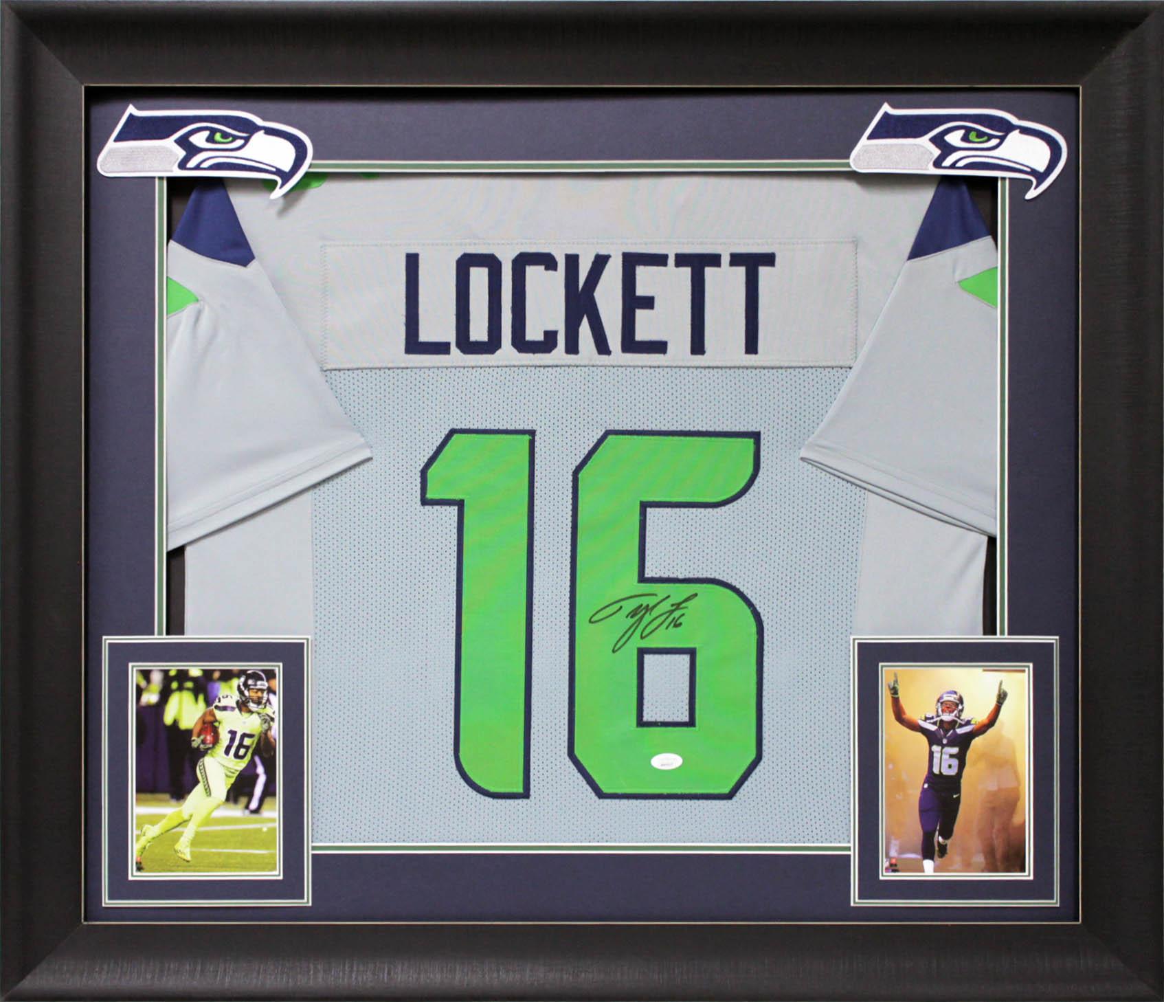 Custom frame measures approximately 32" x 37" in size and features a jersey hand-signed by Tyler Lockett.