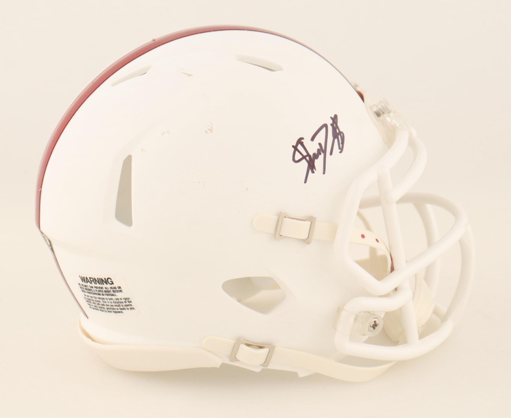 Riddell Jackson State Tigers Speed mini helmet. Hand-signed by Shedeur Sanders. Please note that there are stains on the right side of the helmet.