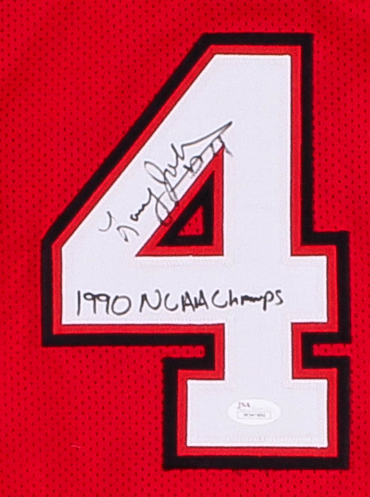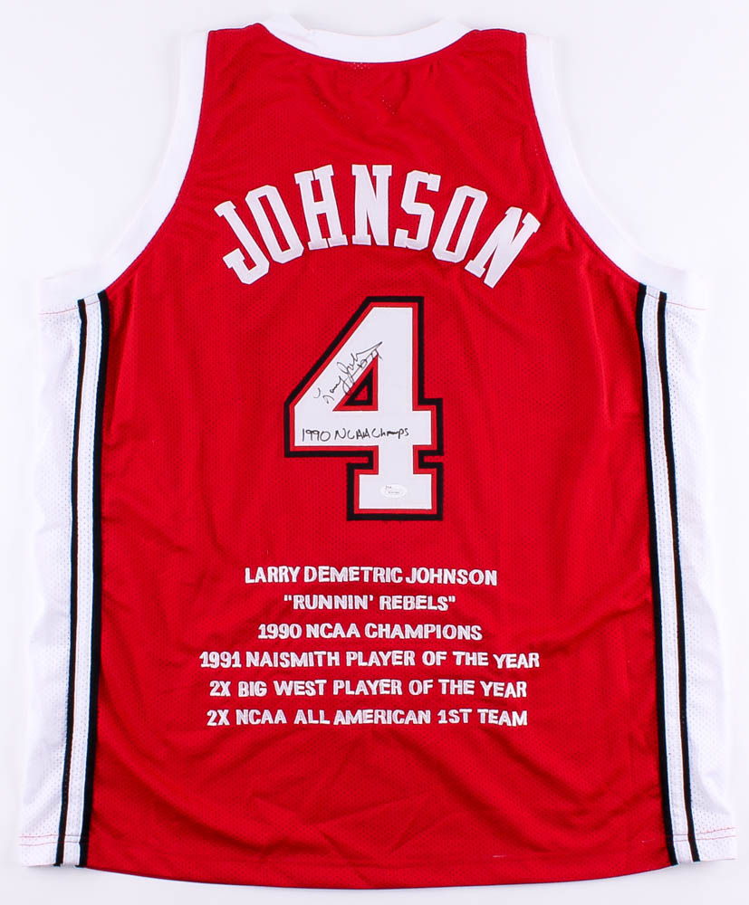 Larry Johnson Signed UNLV Rebels Career Highlight Stat Jersey Inscribed "1990 NCAA Champs" (JSA COA)