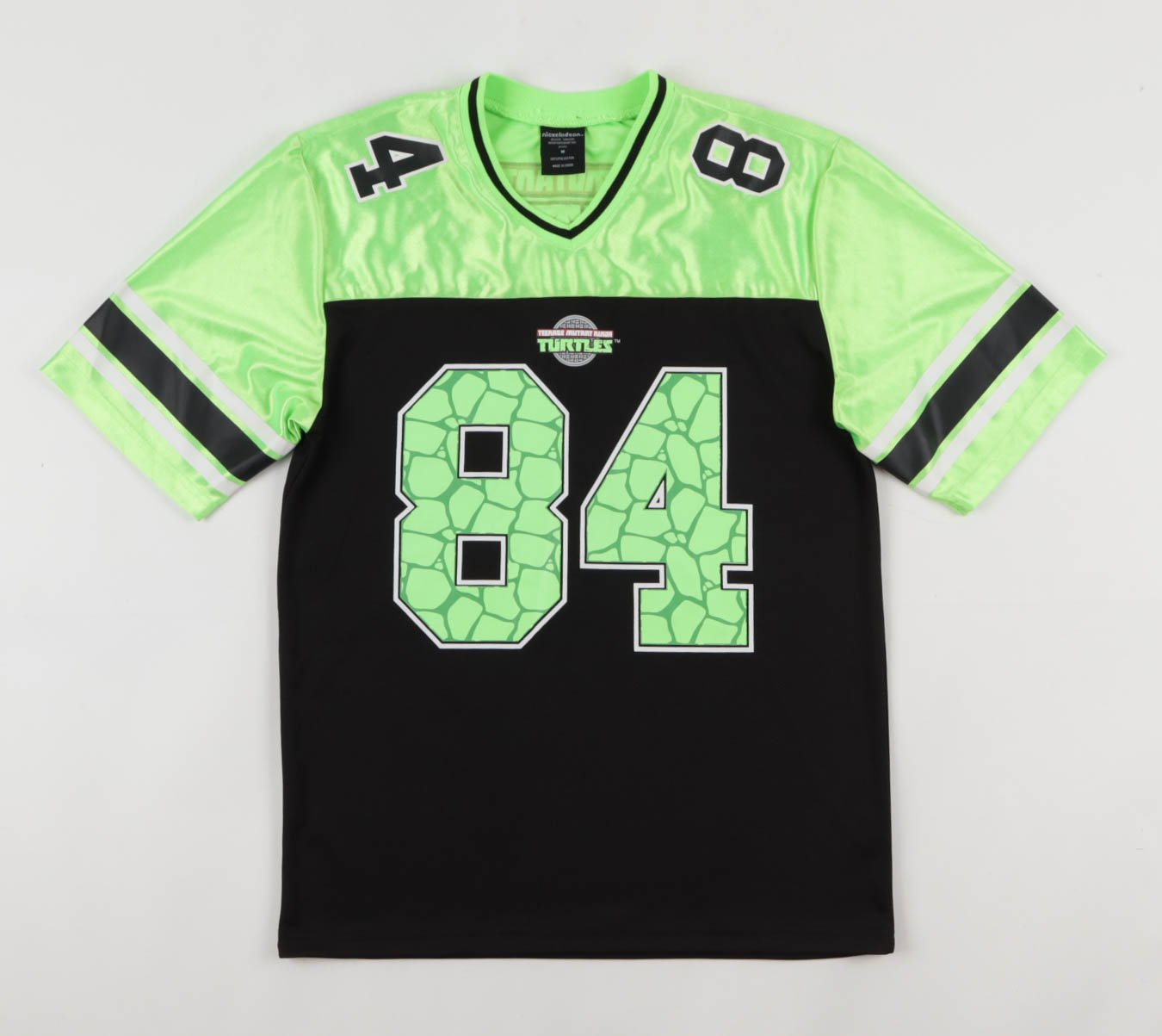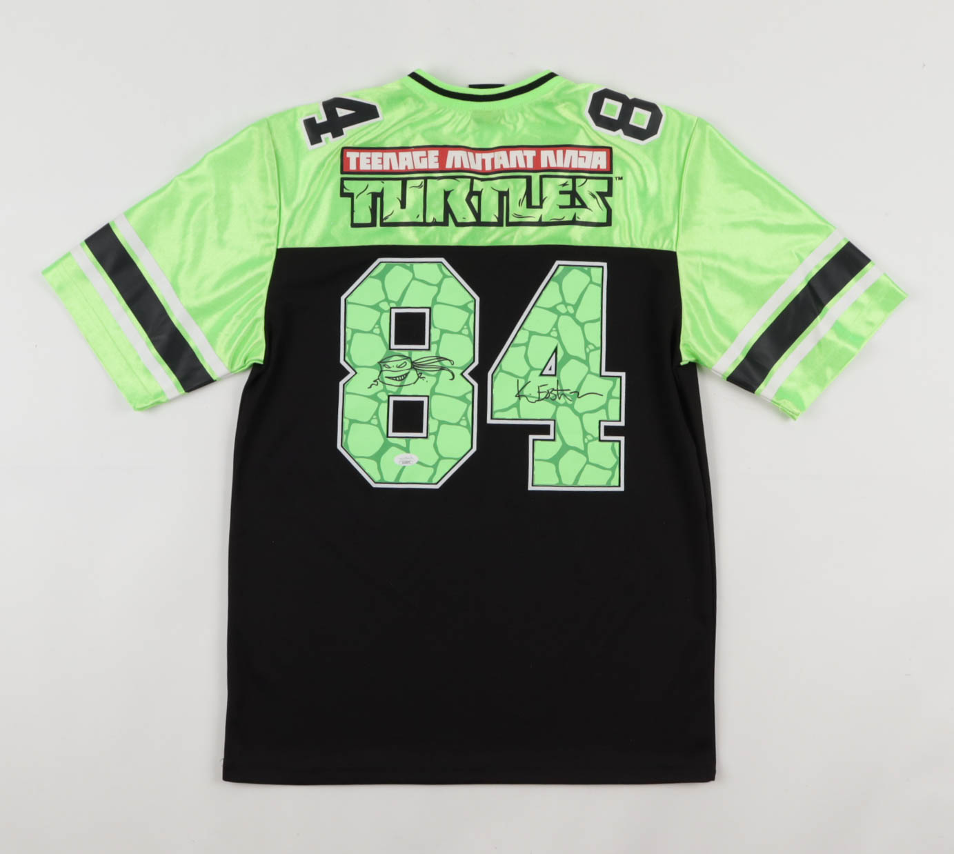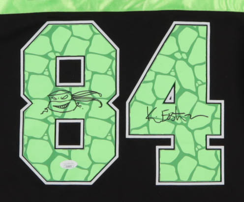 Nickelodeon on-court style jersey. Everything is printed on, size L. Hand-signed by Kevin Eastman.