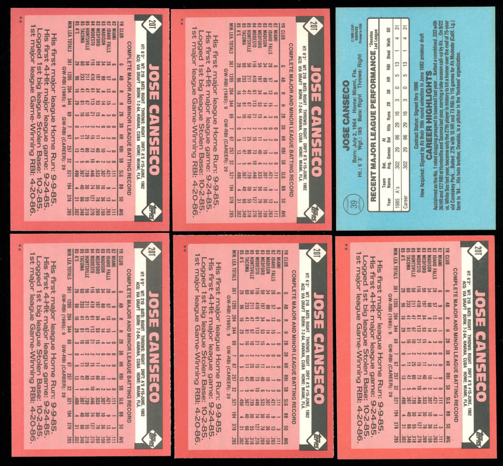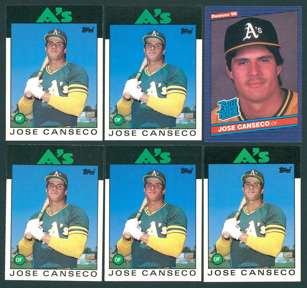 Lot of (6) Jose Canseco Rookie Baseball Cards with (5) 1986 Topps Traded #20T RC & 1986 Donruss #39 RC