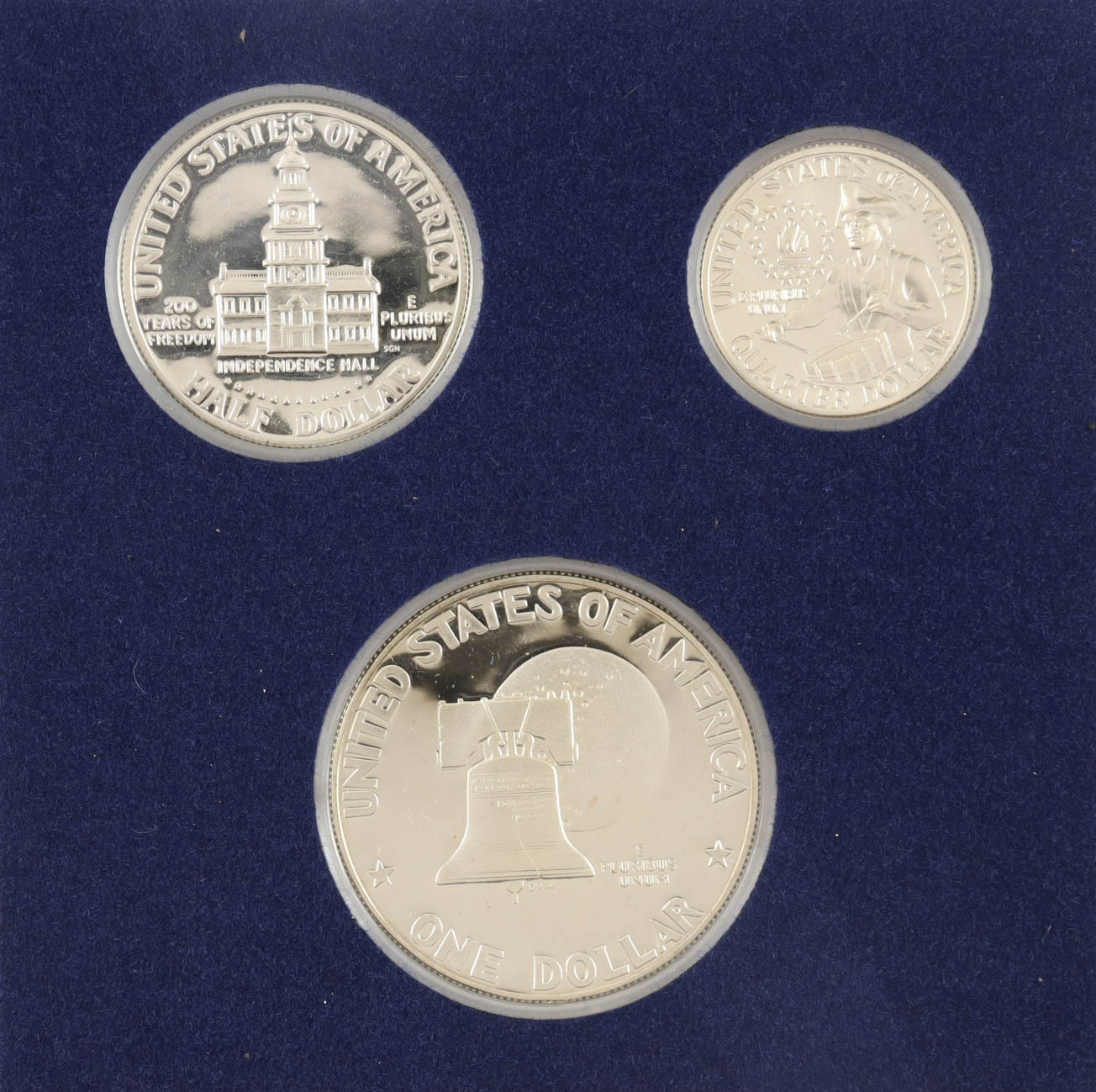 1976-S U.S. Bicentennial Silver Proof Coin Set with (3) Coins & Original Packaging