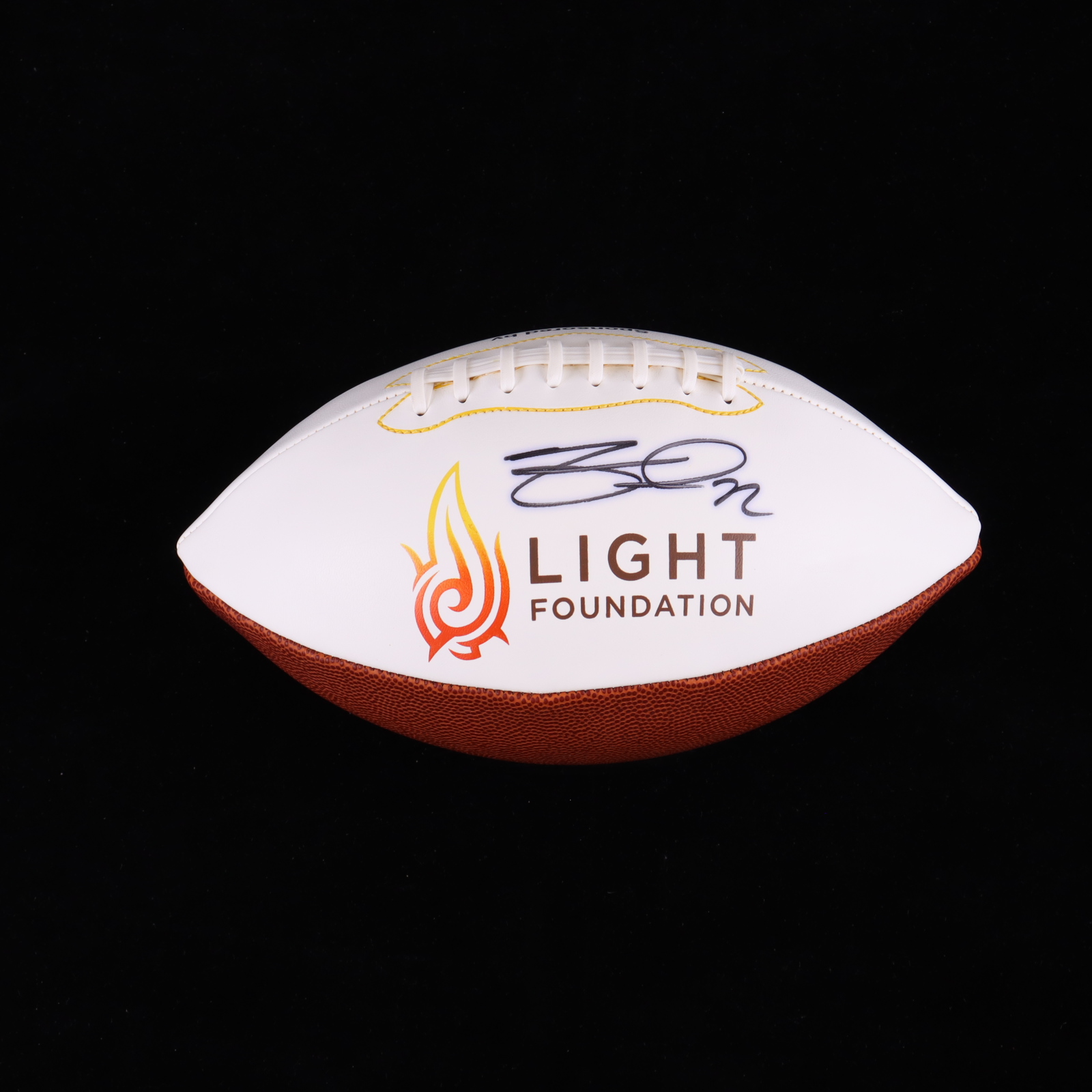 "Light Foundation" logo football has been hand-signed Matt Light (New England Patriots).