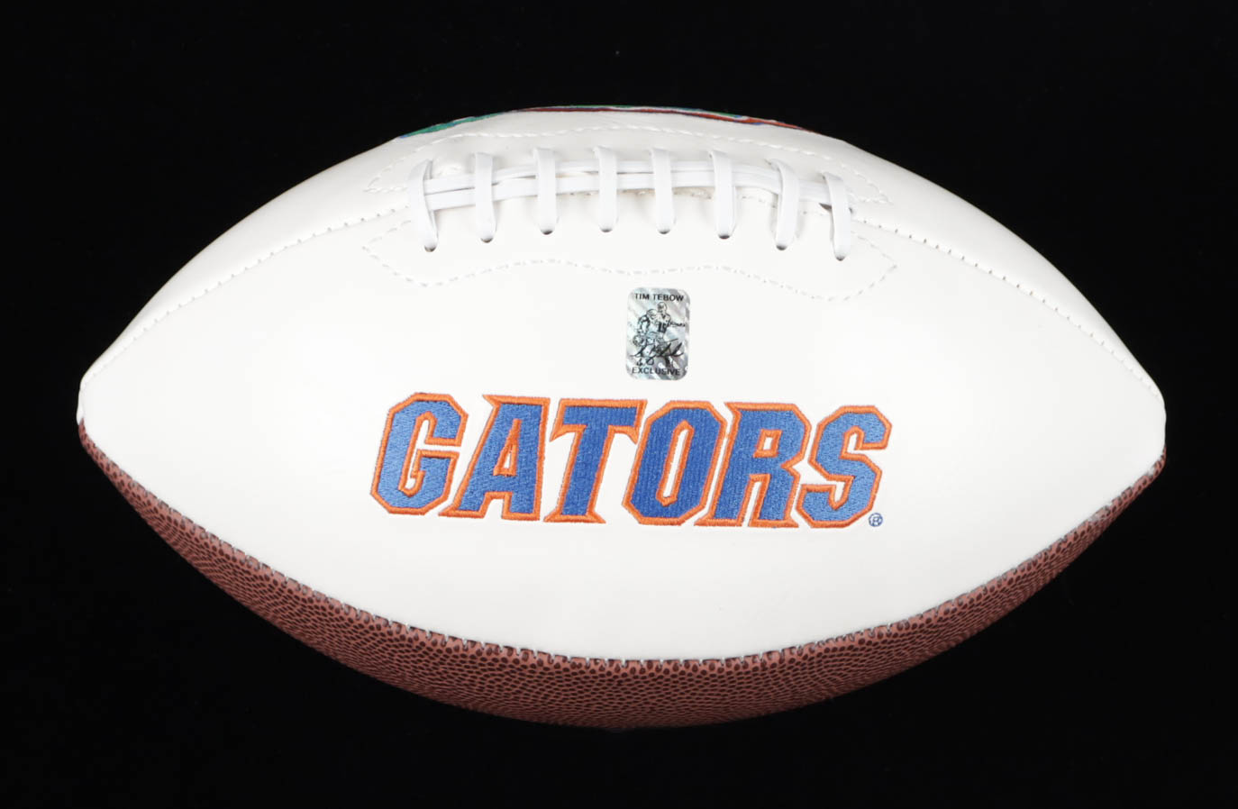 Florida Gators logo football has been hand-signed by Tim Tebow. Please note, the signature is smudged.