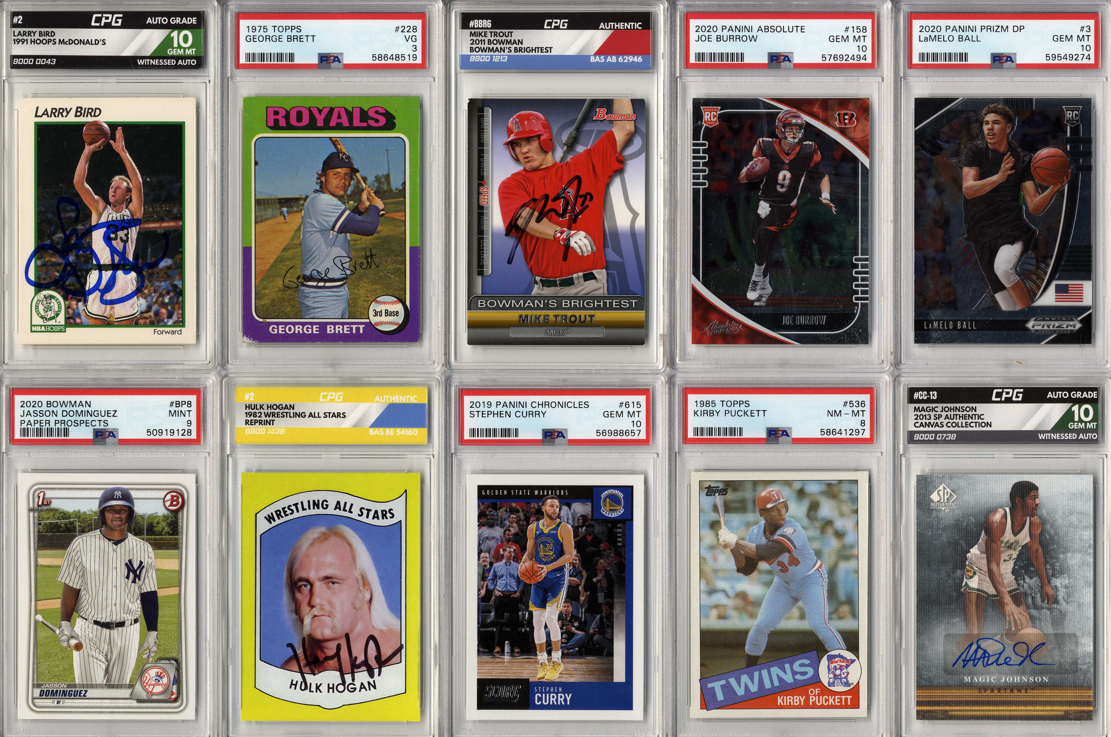 (1) Graded Card Authenticated & Encapsulated by PSA, CPG (Card Pro Grading), Beckett, SGC or HGA. See scans of each card above.