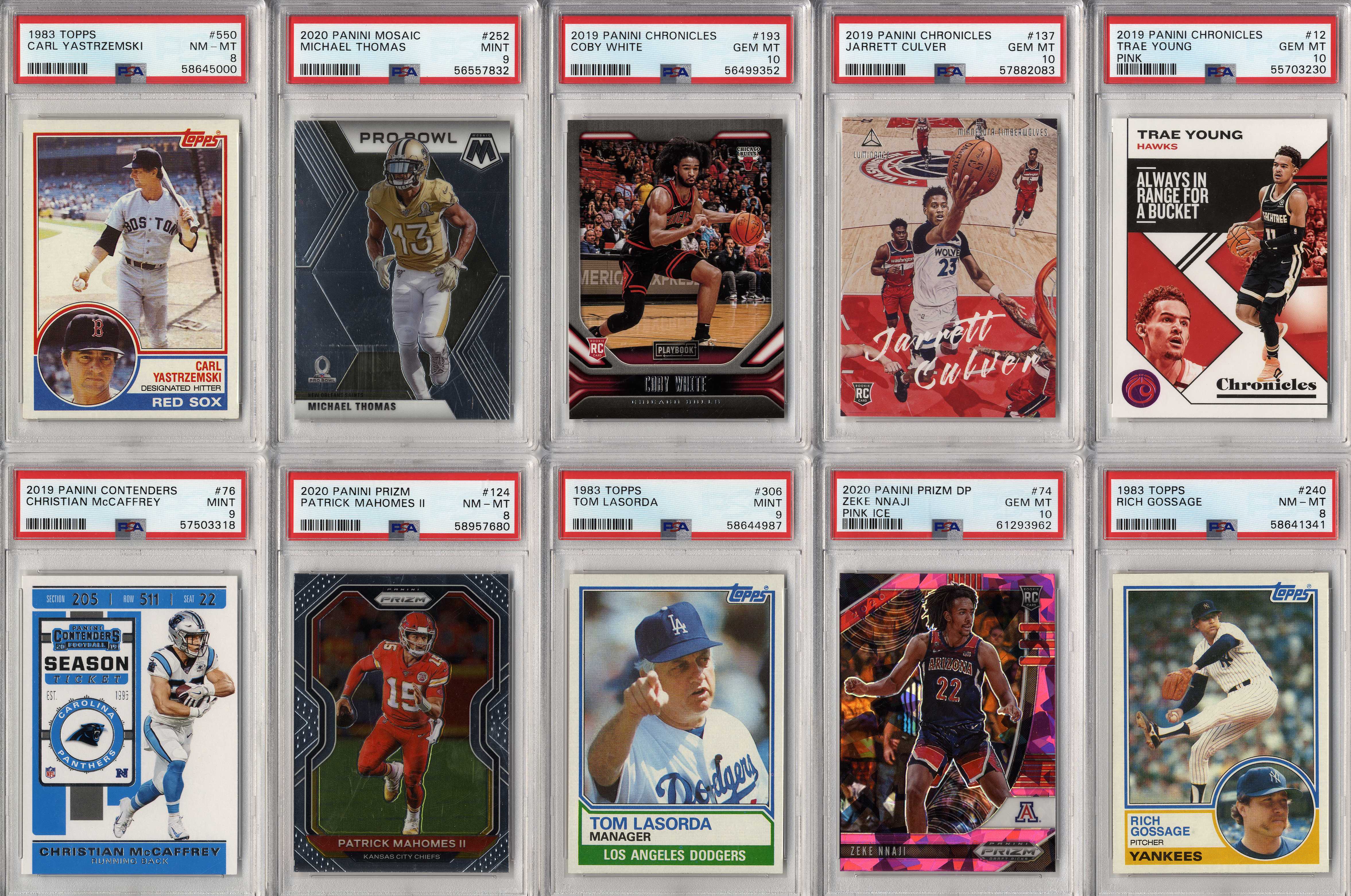 Michael Jordan, Tom Brady, Patrick Mahomes, Tiger Woods, Babe Ruth, Wayne Gretzky, Mike Trout, Aaron Rodgers, Magic Johnson, Larry Bird, Shohei Ohtani, Ted Williams, Mickey Mantle, Joe DiMaggio, Ken Griffey Jr., Barry Bonds, Albert Pujols, DK Metcalf, Stephen Curry, Charlie Sheen, Justin Herbert, Willie Mays, Frank Robinson, Willie McCovey, Hank Aaron, Ernie Banks, Jose Altuve, Jim Brown, Don Mattingly, Robin Yount, Mike Singletary, Walter Payton, Kobe Bryant, Trevor Lawrence, Justin Lawrence, Justin Fields, Barry Sanders, Drew Brees, Jim Kelly, Thurman Thomas, Andre Reed, Stefon Diggs, Justin Jefferson, Aaron Donald, Joe Greene, Jerome Bettis, Franco Harris, Rod Woodson, Randy Moss, Kyler Murray, Pele, Emmitt Smith, Troy Aikman, Roger Staubach, Clayton Kershaw, Lamar Jackson, Bo Jackson, Dan Marino, Pete Rose, Juan Soto, Trey Lance, Ronald Acuna Jr, Julian Edelman, Peyton Manning, Brett Favre, Joe Montana, Ezekiel Elliott, Rob Gronkowski, Davante Adams, Tyreek Hill, CeeDee Lamb, Allen Iverson, Nolan Ryan, Ray Lewis, Michael Irvin, Joe Burrow, Lou Gehrig, Shaquille O’Neal, Ja Morant, Zion Williamson, Luka Doncic, Dennis Rodman, Derrick Henry, Fernando Tatis Jr, JJ Watt, Daniel Jones, Sandy Koufax, Jerry West, Jalen Hurts, Chris Godwin, Najee Harris, Calvin Johnson, Baker Mayfield, Christian McCaffrey, Giannis Antetokounmpo, Vladimir Guerrero Jr, OJ Simpson, Yogi Berra, Eric Lindros, Brett Hull, Brian Urlacher, Dick Butkus, Troy Polamalu, Alex Rodriguez, Lamelo Ball, Russell Wilson, Terry Bradshaw, LeBron James, James Worthy, Joe Namath, Kevin Durant, Mario Lemieux, Luis Roberts, Wander Franco, Roberto Clemente, Yordan Alvarez, Mac Jones, Ty Cobb, Honus Wagner, Josh Allen, Bo Bichette, Tom Seaver, Jerry Rice, Steve Young, Dirk Nowitzki, Steve Yzerman, Tua Tagovailoa, Stephen Strasburg, Patrick Roy, Kawhi Leonard, Patrick Kane, Tim Duncan, Freddie Freeman, James Harden, Eloy Jimenez, Alexis Lafreniere, Coby White, Tyler Herro, Gavin Lux, Connor McDavid, Pete Alonso, George Brett, Rickey Henderson, Tony Gwynn, Wade Boggs, Doc Gooden, Travis Kelce, Deion Sanders, Alexander Ovechkin, Greg Maddux, Chipper Jones, Cristiano Ronaldo, Francisco Lindor, Dak Prescott, Jacob DeGrom, Ozzie Smith, Zach Wilson, Jack Eichel, Ben Simmons, Jayson Tatum, Anthony Davis, Kyle Lewis, Jasson Dominguez, Earl Campbell, Steve Nash, Carson Wentz, Cal Ripken Jr, Anthony Edwards, Sidney Crosby, Stephen Strasburg, Bryce Harper, Mookie Betts, RJ Barrett, Trae Young, bob Griese, Cody Bellinger, Ben Roethlisberger, Gale Sayers, Pat Tillman, Reggie White, Hines Ward, Dustin Pedroia, Johnny Unitas, Andrew Luck, Cris Carter, Adrian Peterson, Tim Tebow, Marshall Faulk, John Elway, Lawrence Taylor, Ronnie Lott, Anthony Munoz, Jack Lambert, John Hannah, Eric Dickerson, Ray Nitschke, Terrell Owens, Steve Young, Ladainian Tomlinson, Junior Seau, Bart Starr, Larry Fitzgerald, Derrick Thomas, Chris Paul, Shawn Kemp, Alonzo Mourning, Tim Hardaway, Chris Webber, Bill Walton, Chris Bosh, Bernard King, Chris Mullin, Joe Dumars, Grant Hill, Carmelo Anthony, Vince Carter, Kevin Johnson, Dikembe Mutombo, Tracy McGrady, Dennis Rodman, Dwight Howard, Reggie Miller, Ray Allen, Dominique Wilkins, George Gervin, Kevin McHale, Paul Pierce, Jason Kidd, Allen Iverson, Patrick Ewing, Gary Payton, Isiah Thomas, Walt Frazier, Clyde Drexler, Dwyane Wade, Scottie Pippen, Julius Erving, John Stockton, Charles Barkley, Karl Malone, Kevin Garnett, Hakeem Olajuwon, David Robinson and many more!