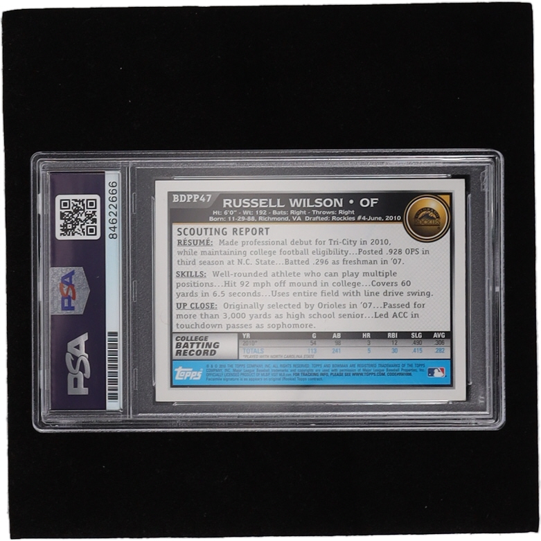 Russell Wilson Signed 2010 Bowman Draft Prospects #BDPP47 (PSA)