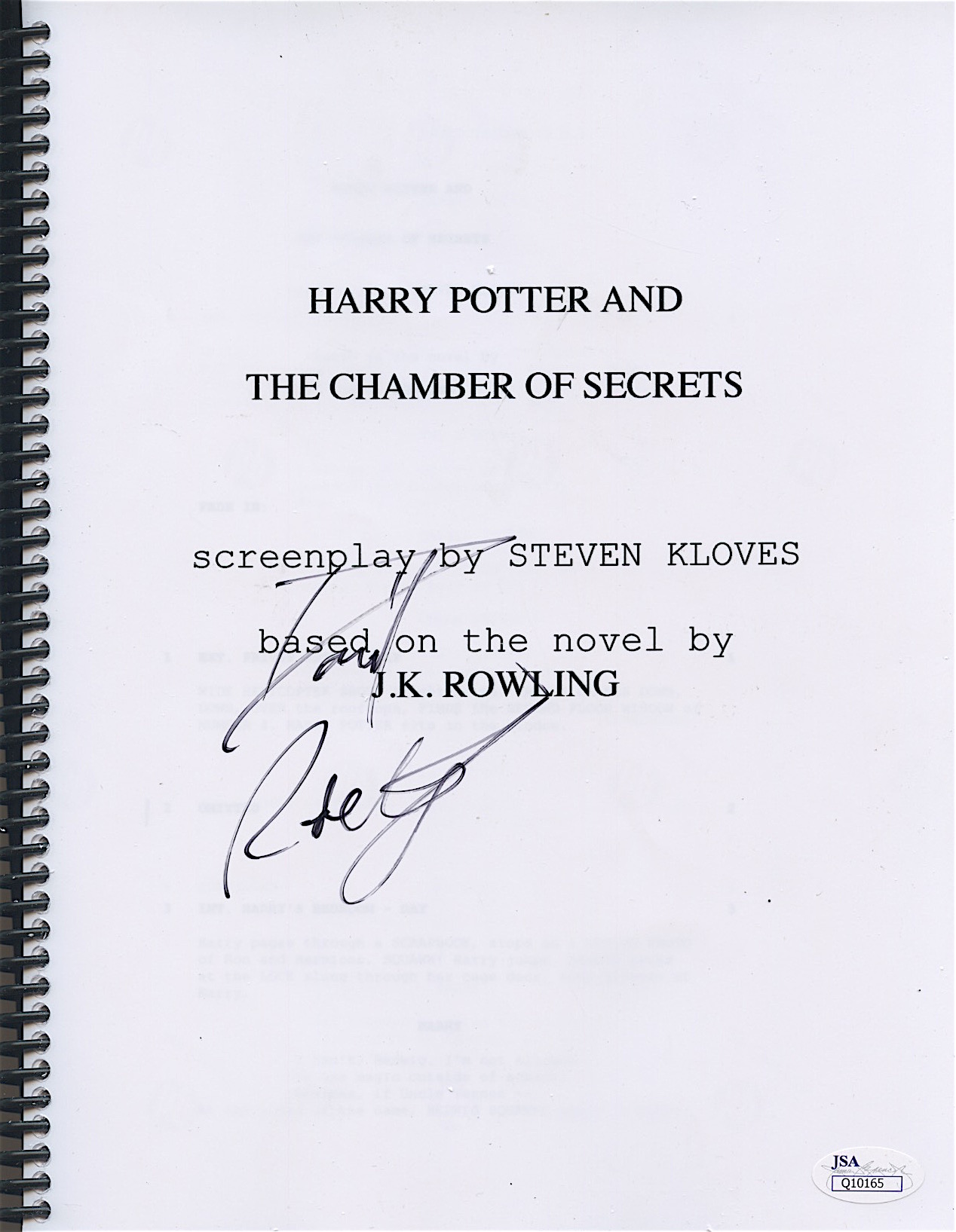 Daniel Radcliffe Signed "Harry Potter and the Chamber of Secrets" Full Movie Script (JSA COA)