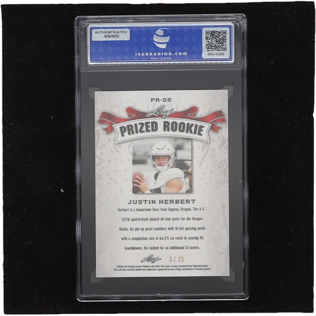 Justin Herbert 2020 Leaf Prized Rookie Silver #PR26 #3/25 (ISA 10)