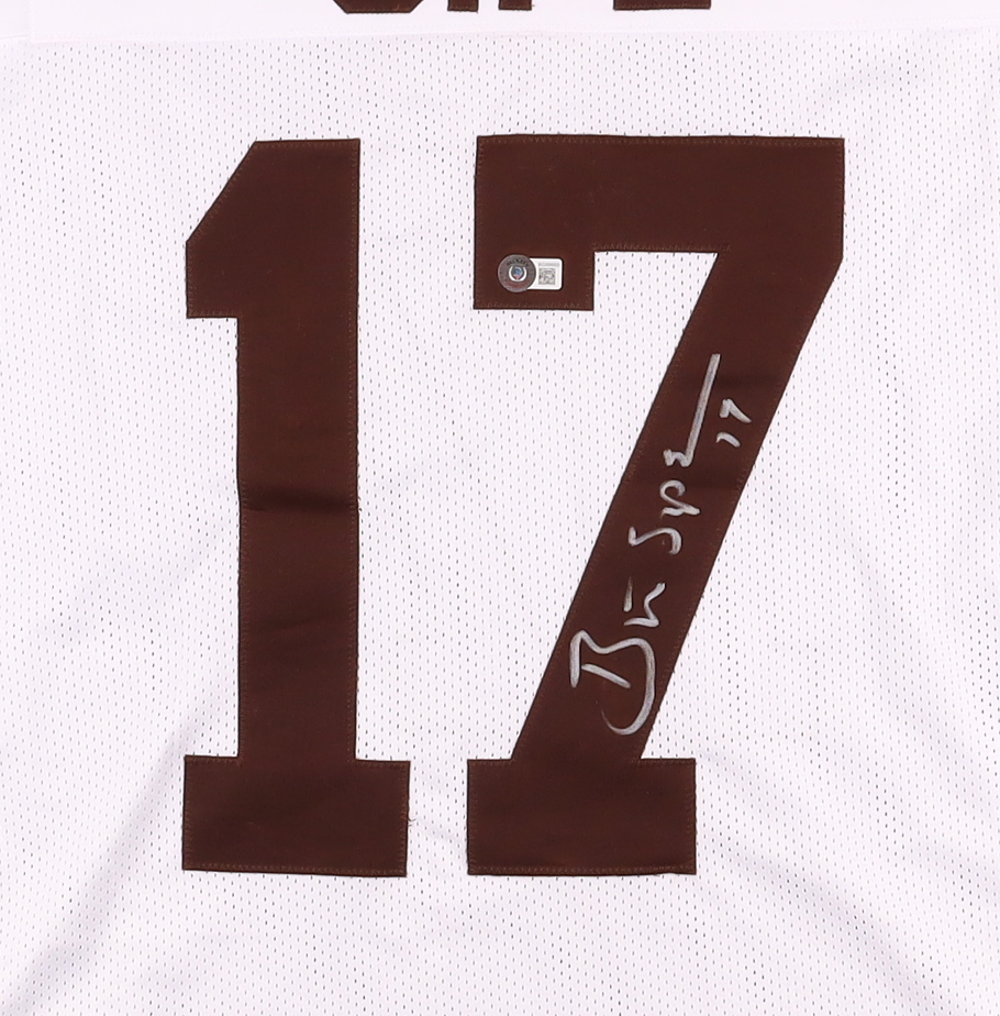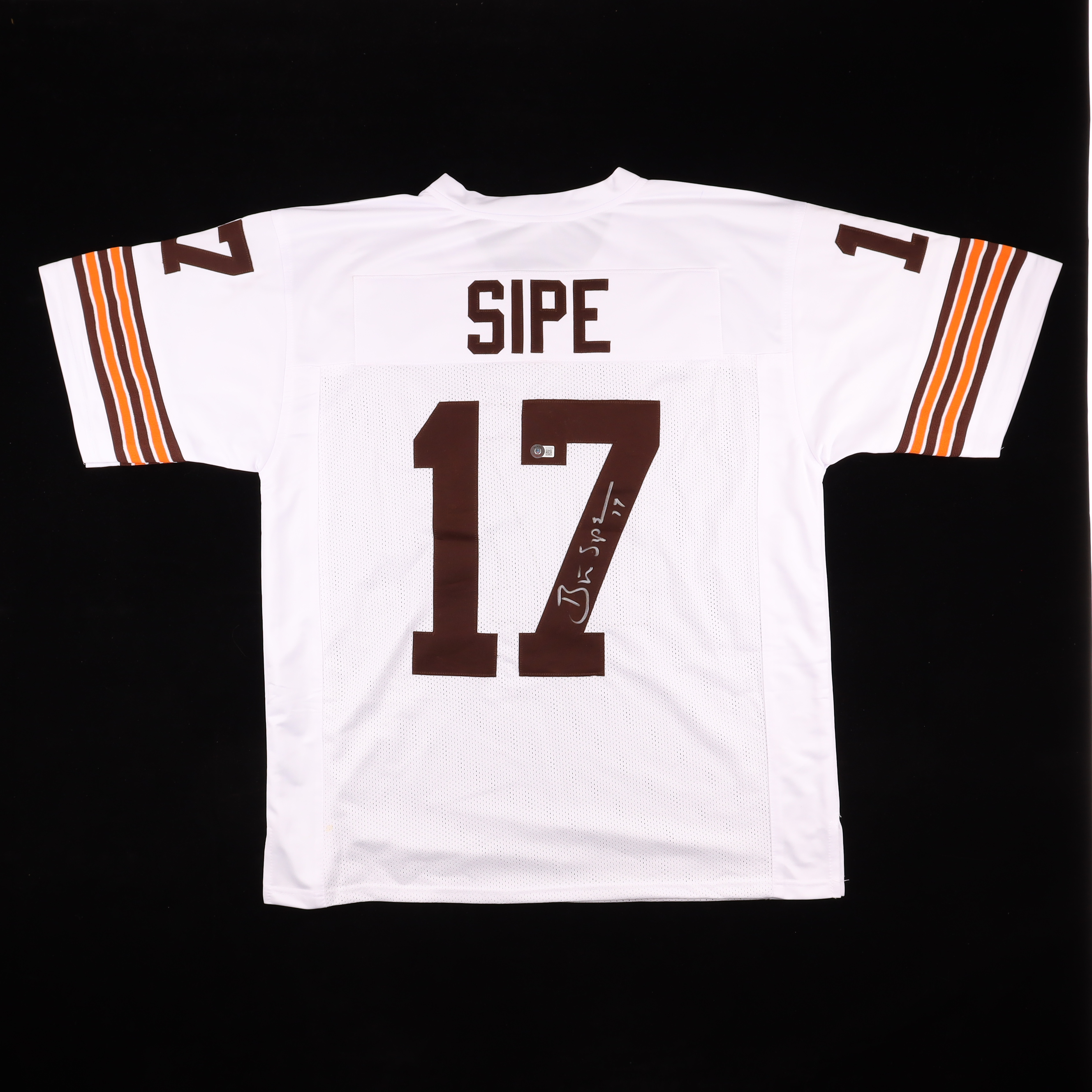 Custom on-field style jersey. Everything is sewn on, size XL. Hand-signed by Brian Sipe.