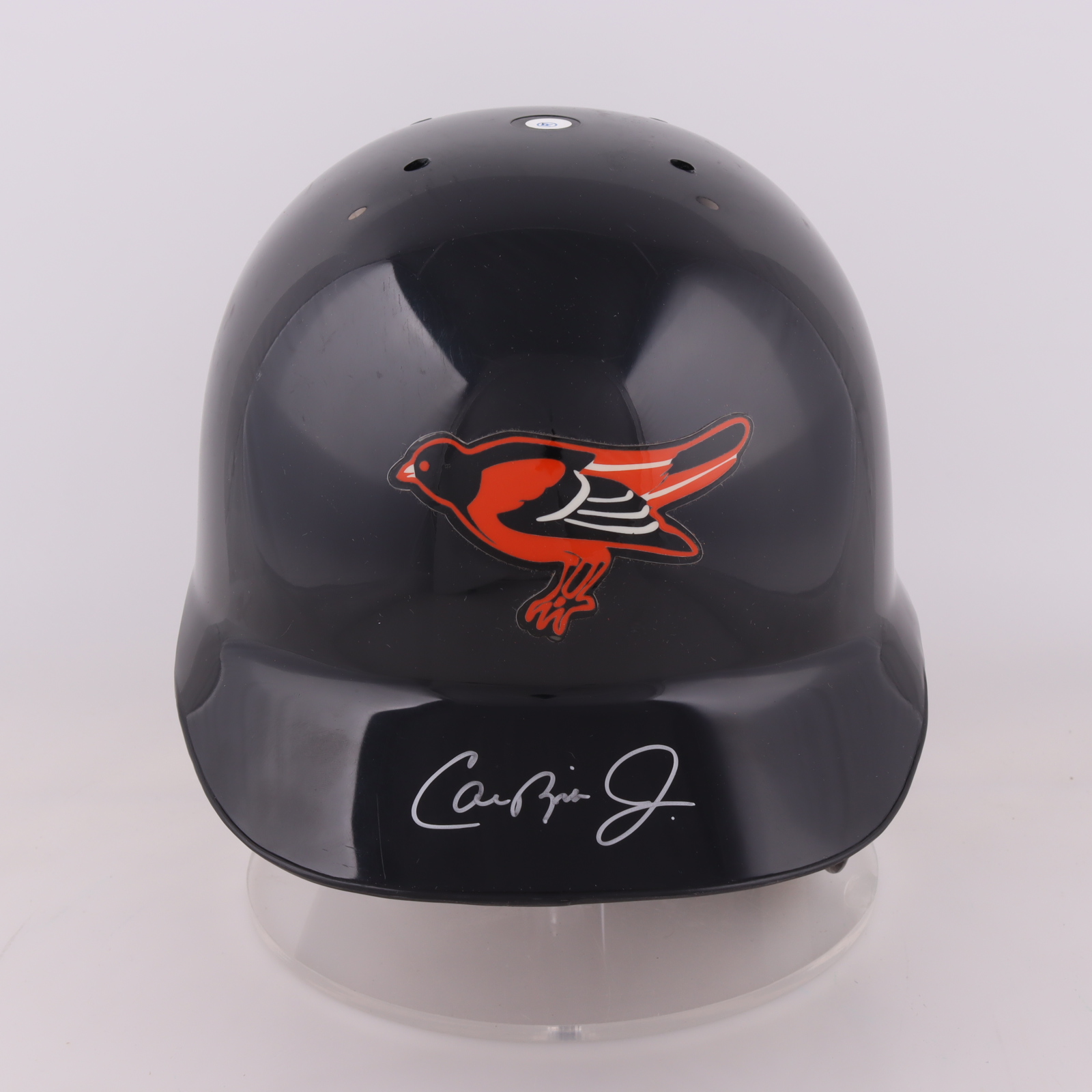 Baltimore Orioles full-size batting helmet has been hand-signed by Cal Ripken Jr. (HOF).