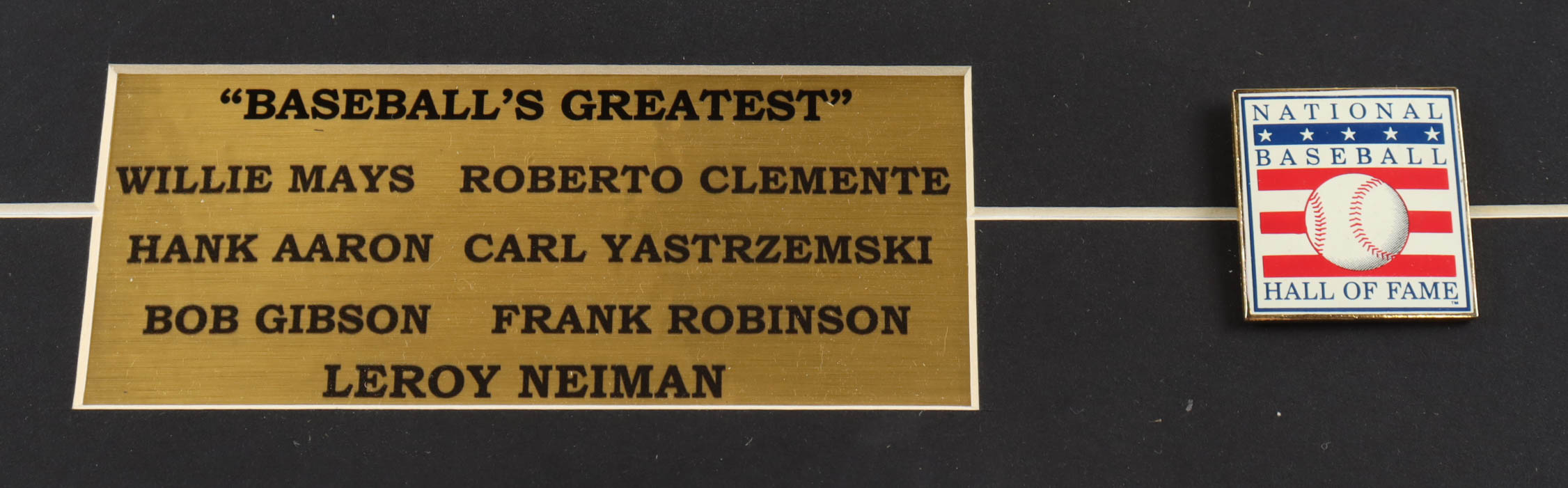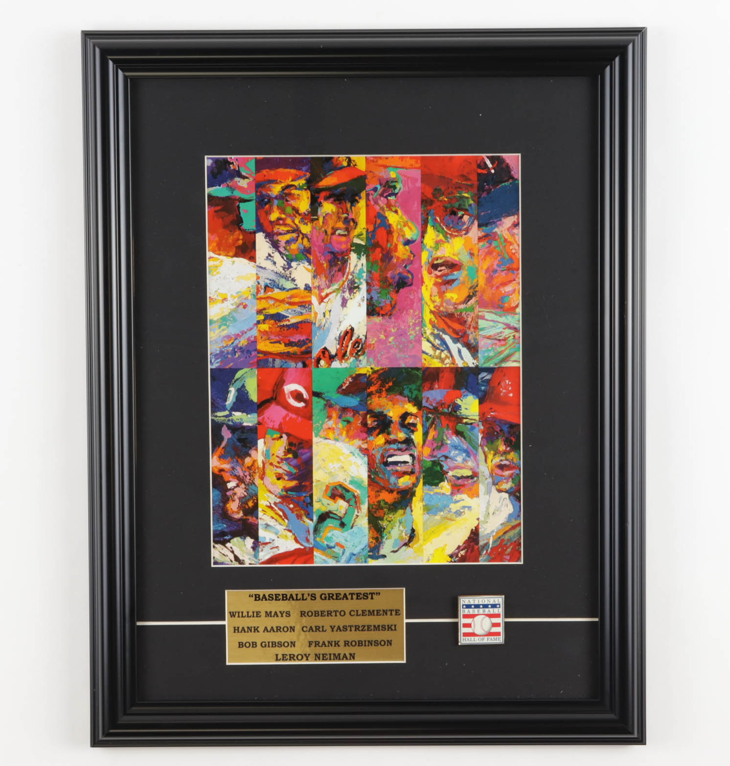 LeRoy Neiman "Baseball's Greatest" Custom Framed Print Display Featuring Roberto Clemente, Hank Aaron, Carl Yastrzemski and Willie Mays with Vintage MLB Hall of Fame Decal