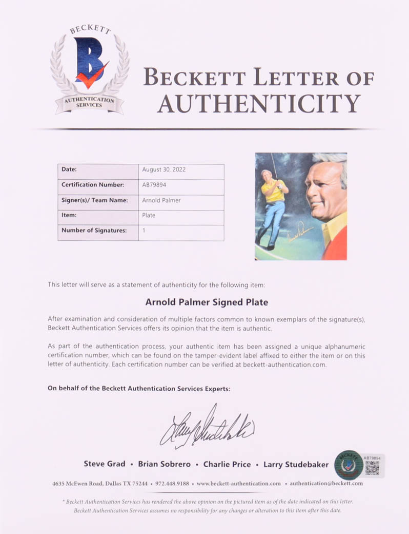 Arnold Palmer Signed Custom Framed Plate Display (Beckett)