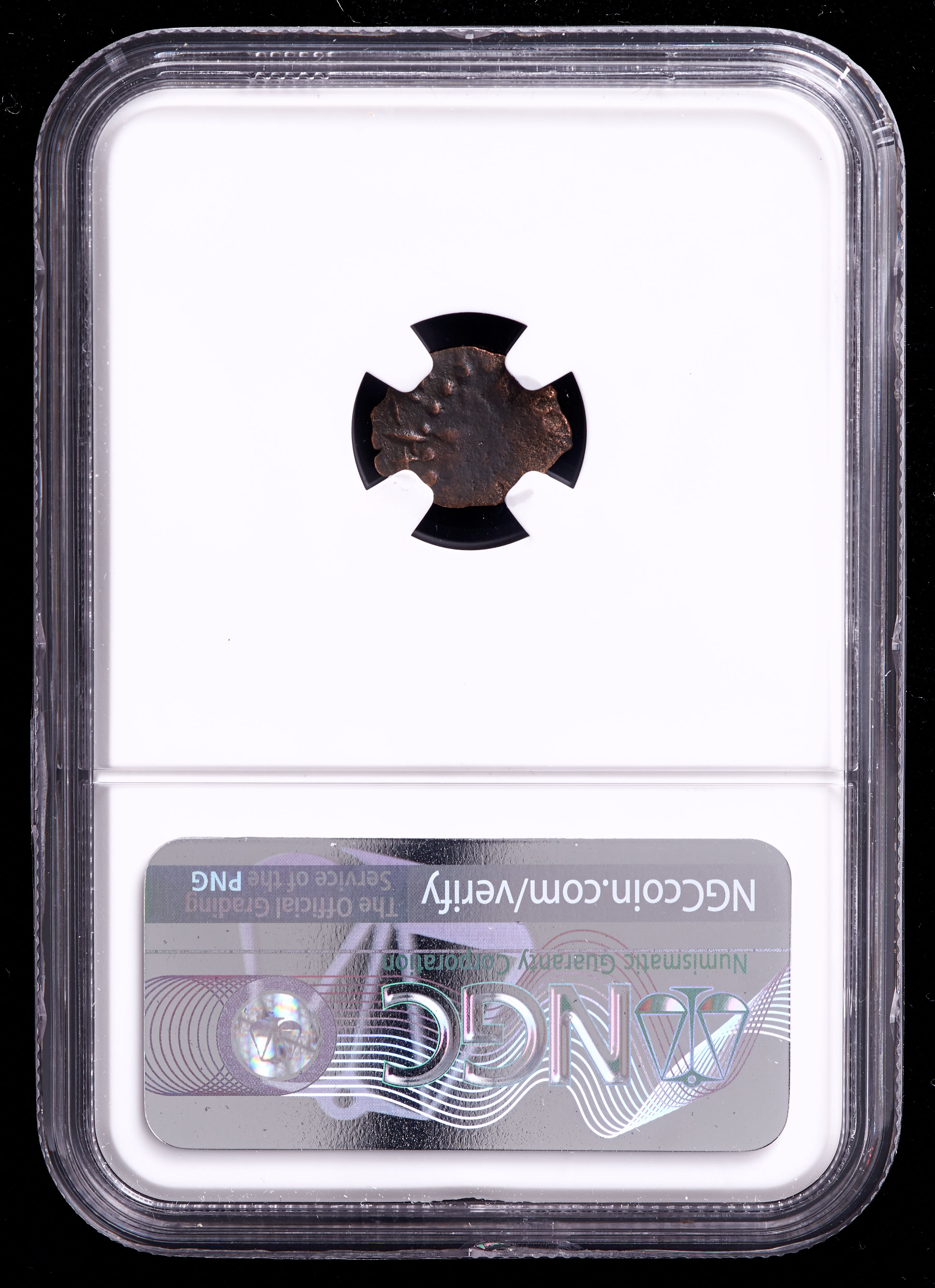 Very rare authentic bronze Mite coin. The coin has been authenticated and encapsulated by NGC (Numismatic Guaranty Corporation).