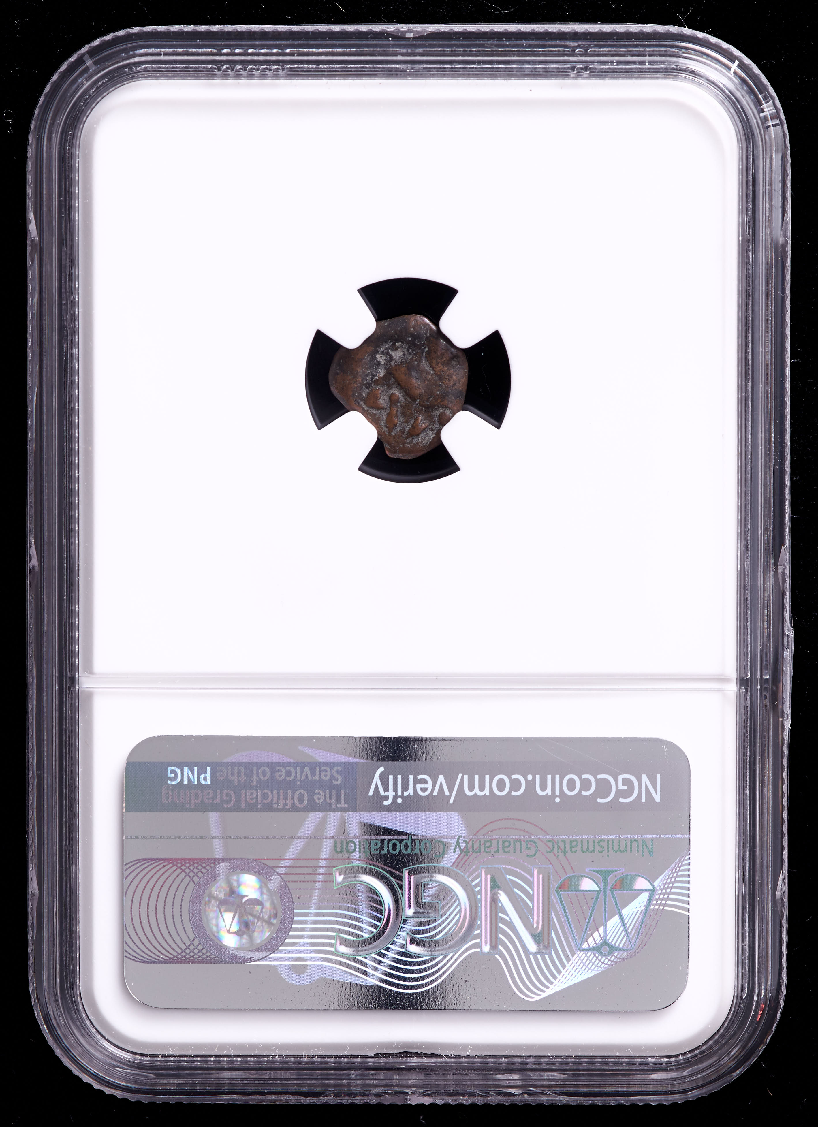 Very rare authentic bronze Mite coin. The coin has been authenticated and encapsulated by NGC (Numismatic Guaranty Corporation).
