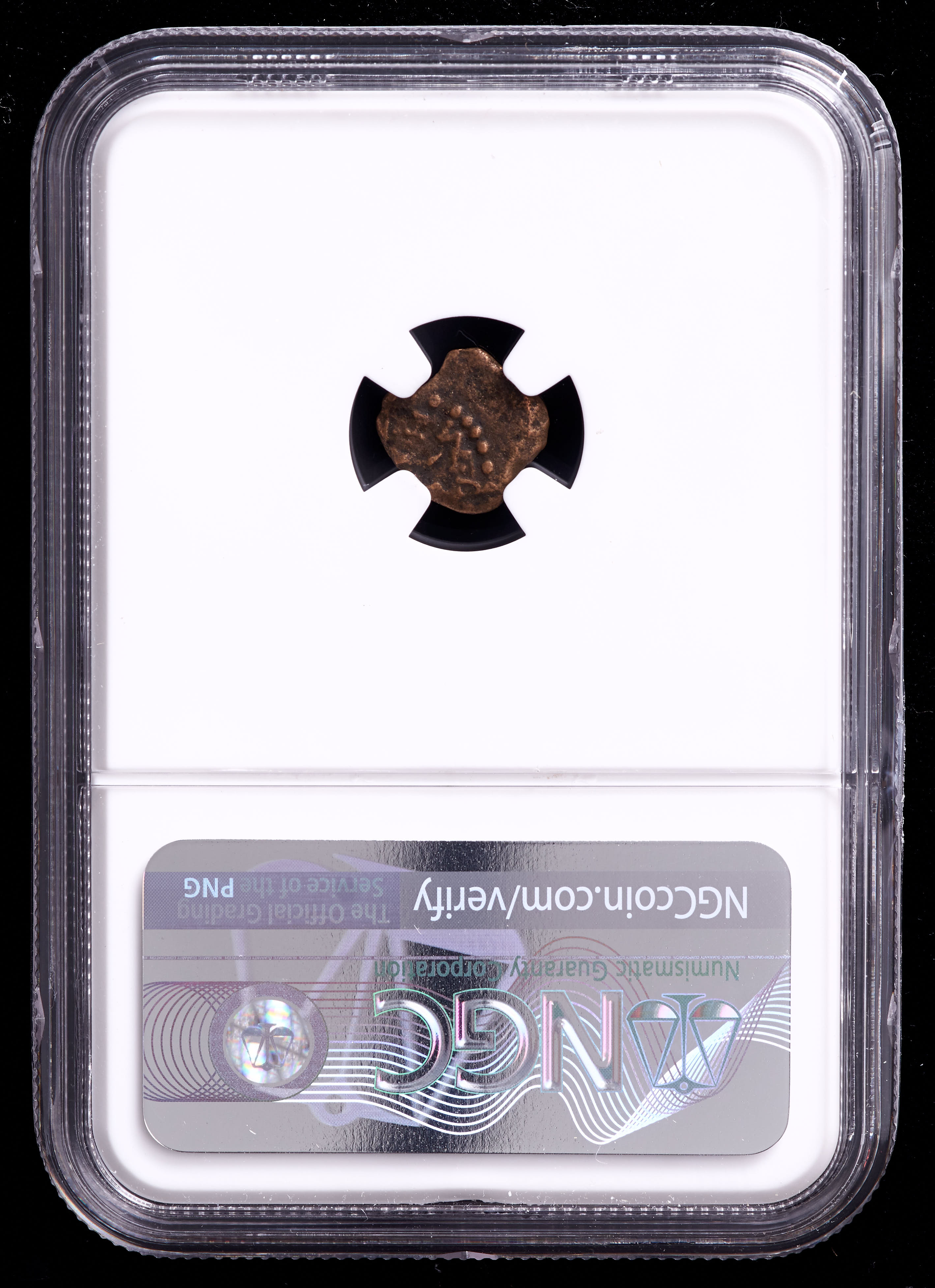 Very rare authentic bronze Mite coin. The coin has been authenticated and encapsulated by NGC (Numismatic Guaranty Corporation).
