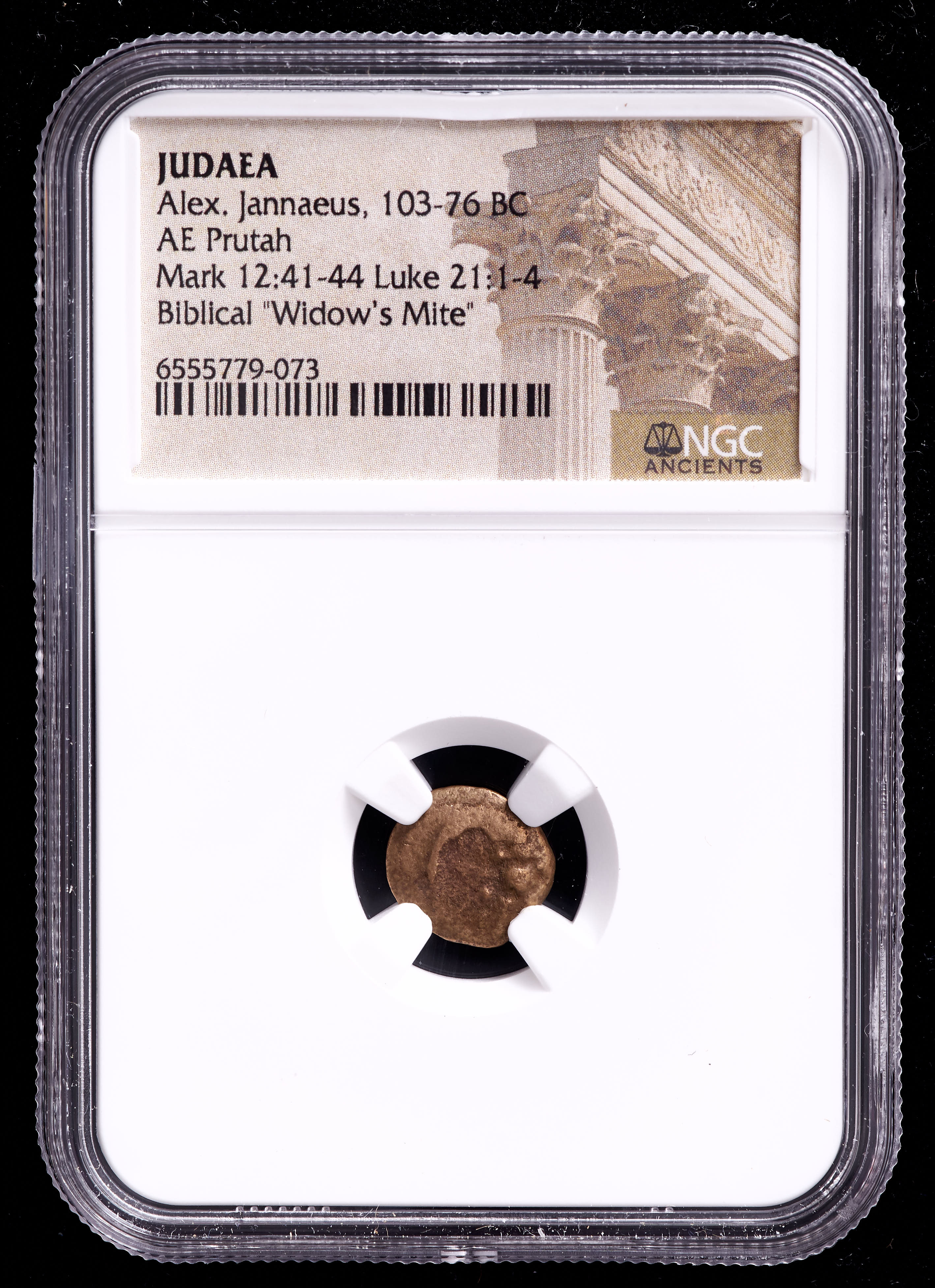 Very rare authentic bronze Mite coin. The coin has been authenticated and encapsulated by NGC (Numismatic Guaranty Corporation).