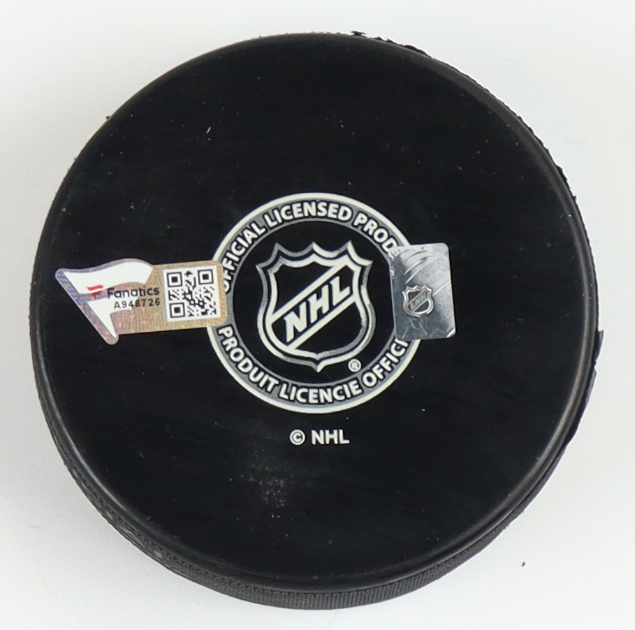 New York Rangers logo hockey puck. Hand-signed by Brady Skjei.