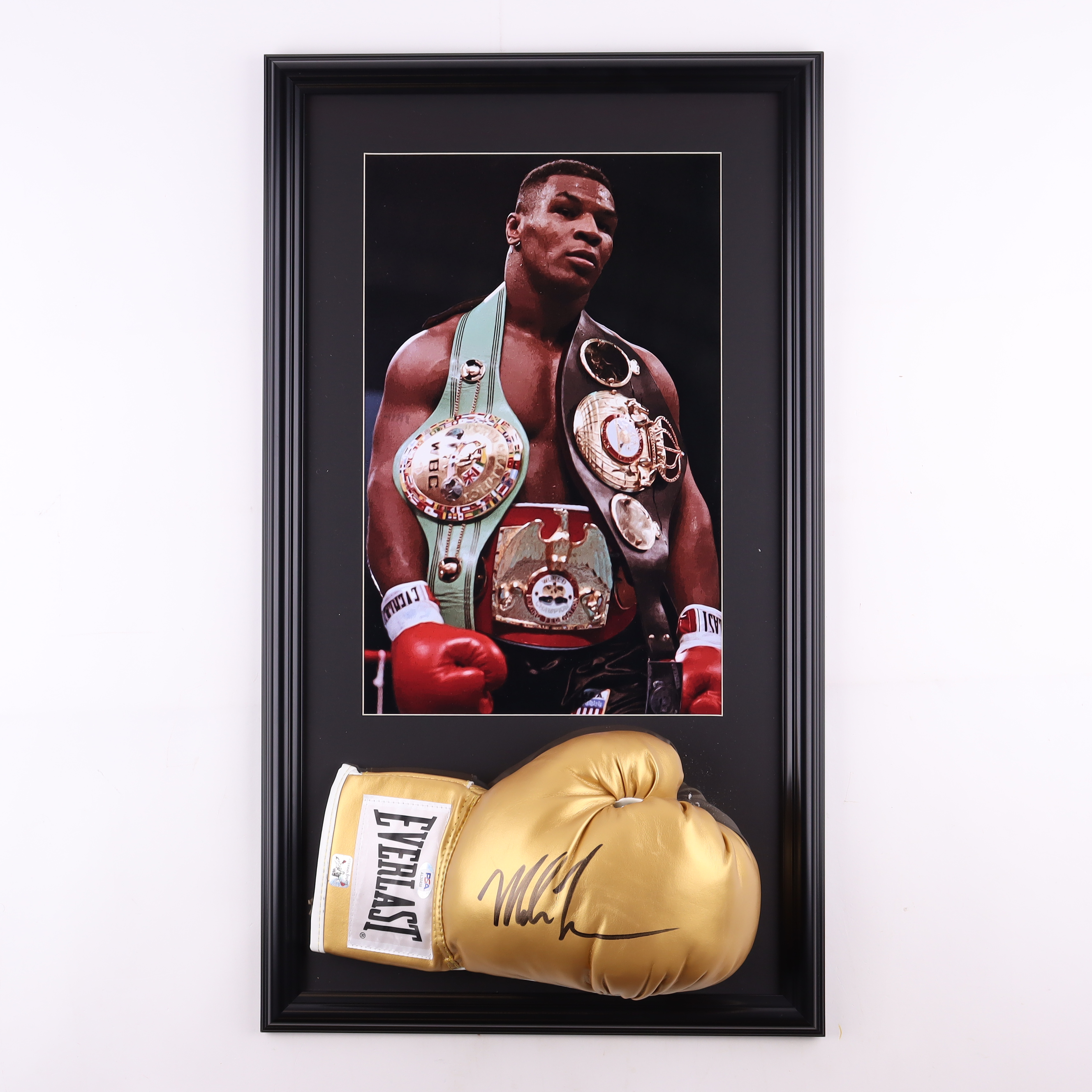 Custom frame measures 16" x 28" in size and features an Everlast boxing glove that has been hand-signed by Mike Tyson (HOF).