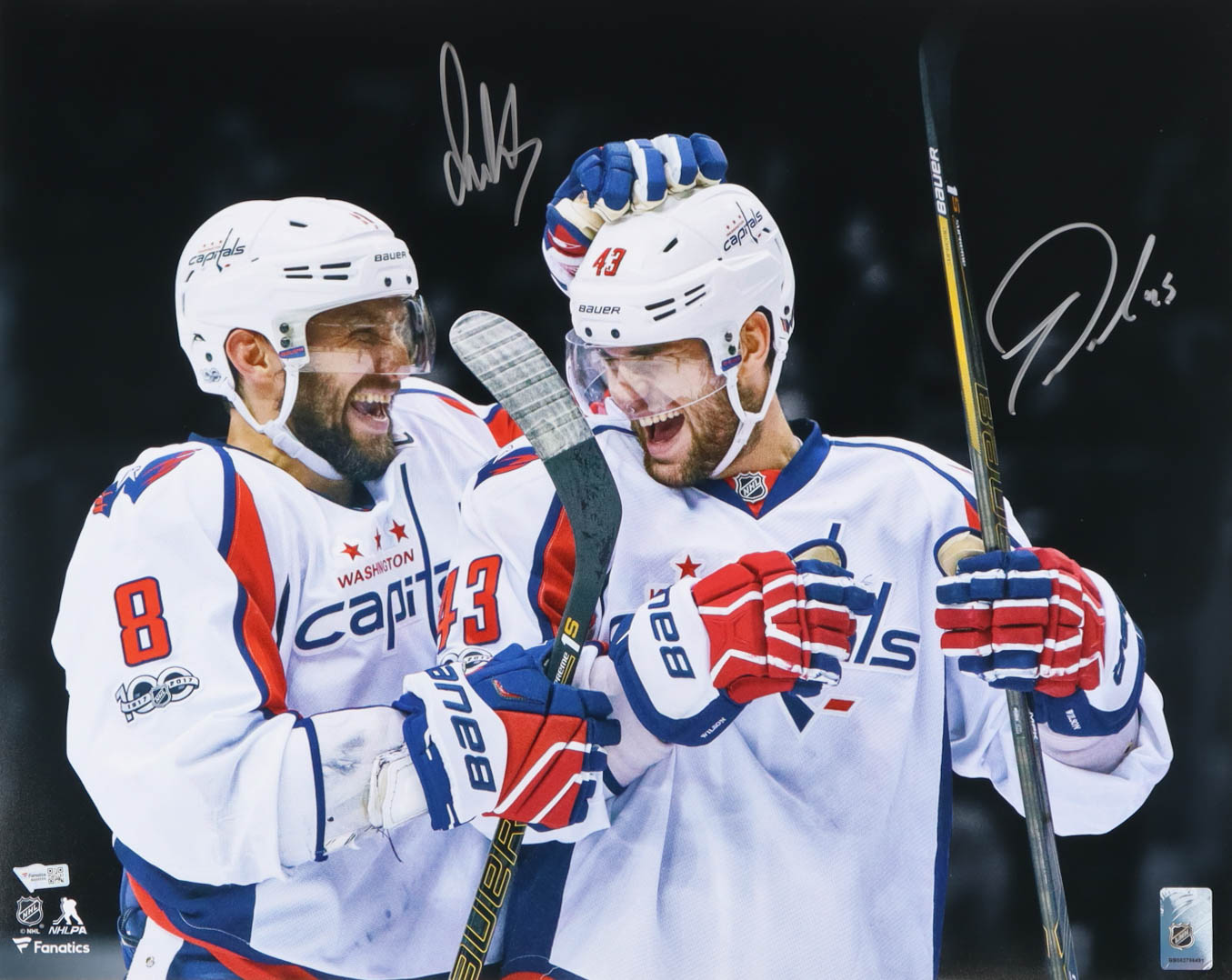 Photo measures 16" x 20" in size. Hand-signed by Alexander Ovechkin and Tom Wilson (Washington Capitals).