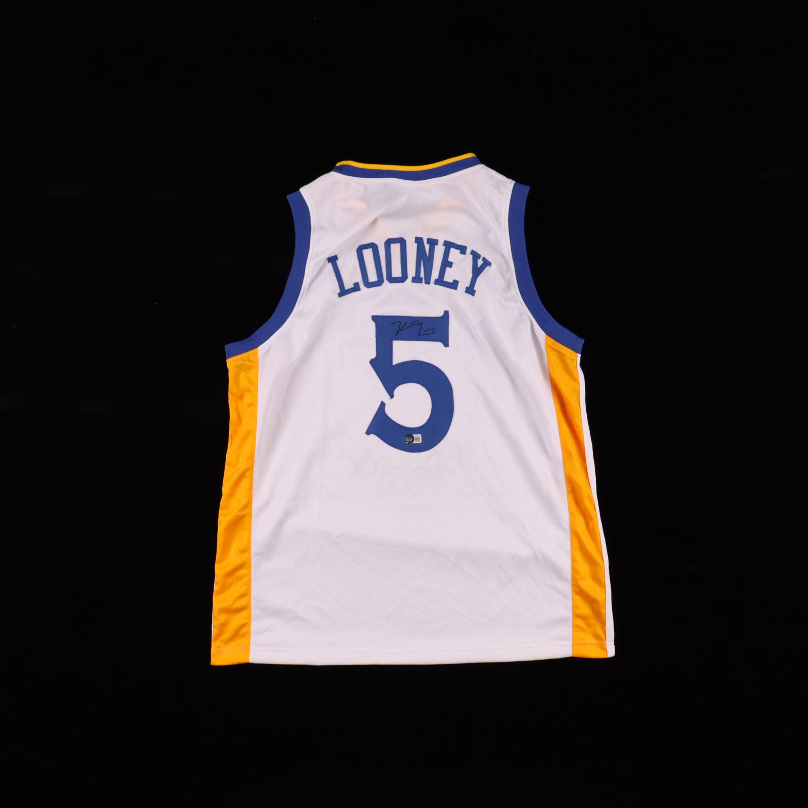 Custom on-court style jersey. Everything sewn on, size XL. Hand-signed by Kevon Looney.