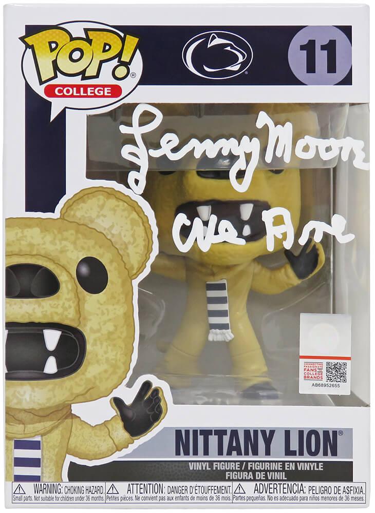 Funko Pop! figure measures approximately 4" tall. The packaging has been hand-signed and inscribed by Lenny Moore (Penn State Nittany Lions, HOF).