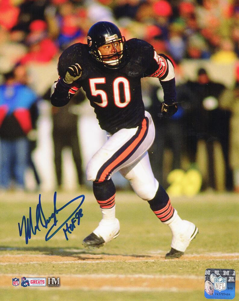 Photo measures 8" x 10" in size and has been hand-signed and inscribed by Mike Singletary (Chicago Bears, HOF).