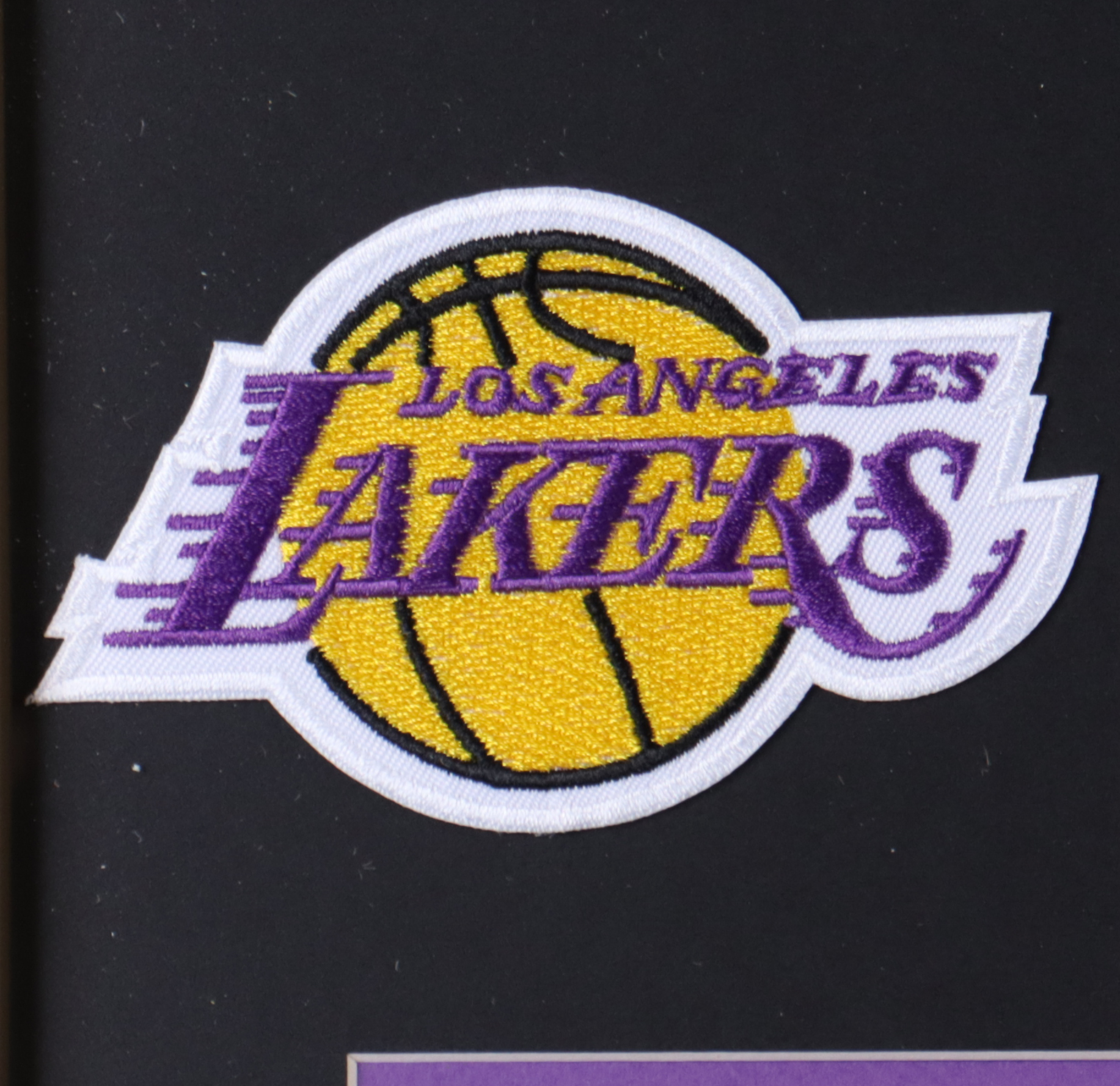 Custom frame measures 32" x 36" in size and features a jersey of Kobe Bryant (D. 2020, HOF). Display also includes a large pewter Lakers logo, as well as (2) 8" x 10" photos. Please note that the display is unsigned.