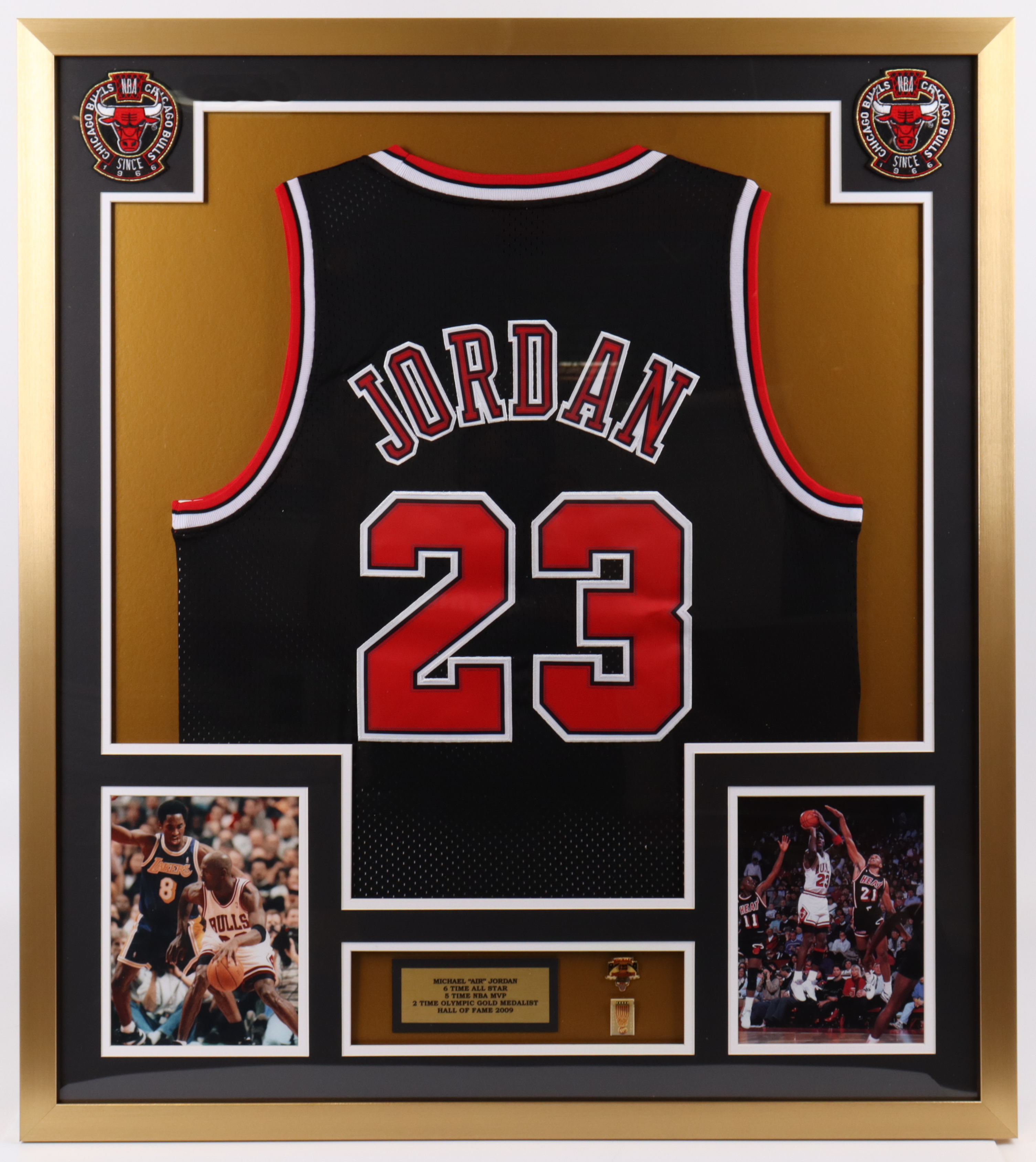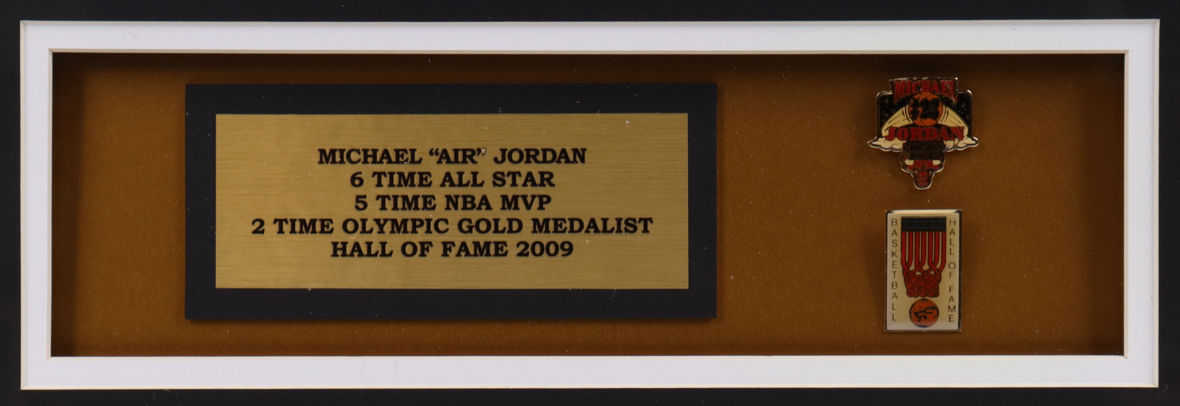 Michael Jordan Custom Framed Jersey Display with Vintage HOF Pin