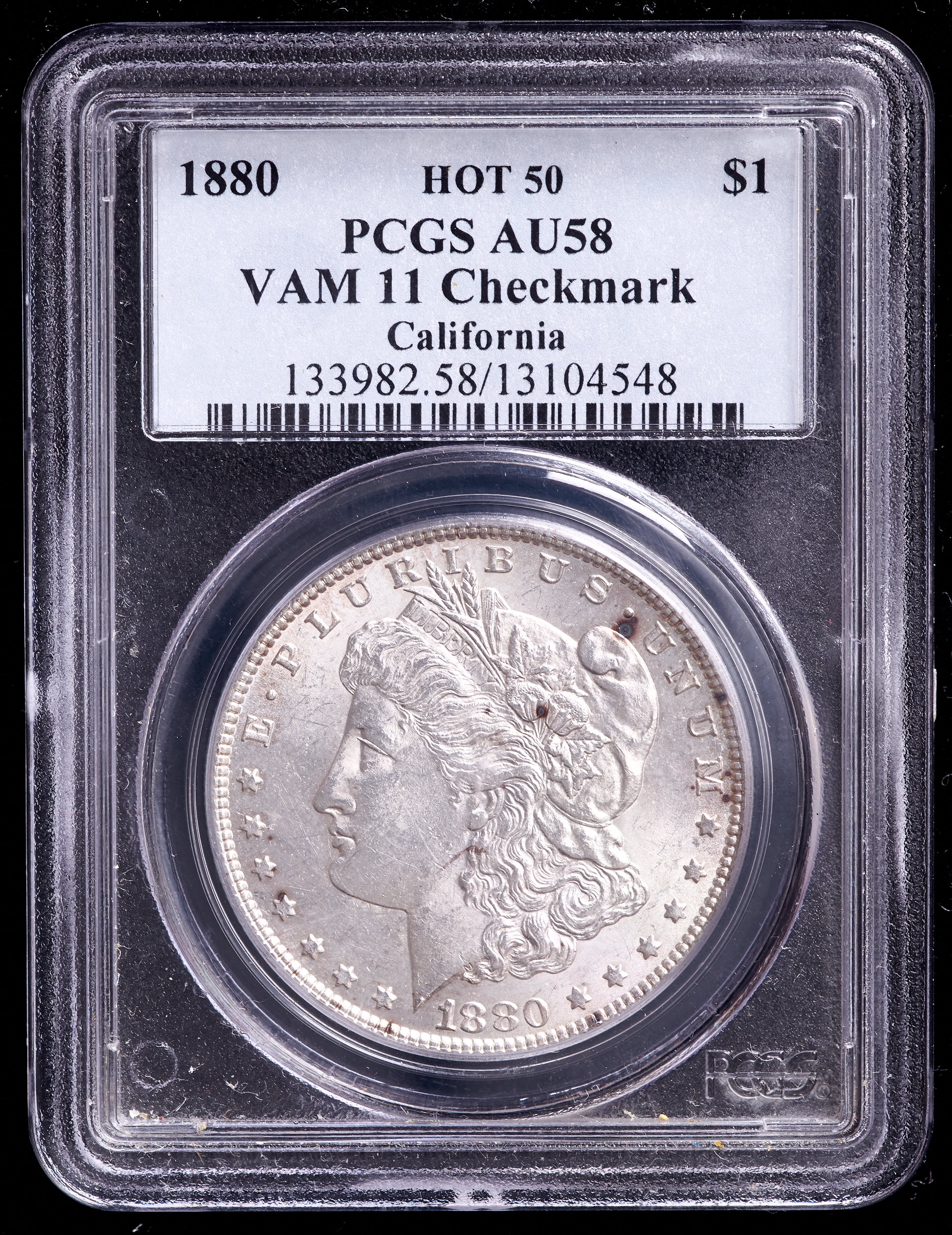 1880 Morgan Silver Dollar - VAM-11 Checkmark Top 50 - California Collection (PCGS AU58)