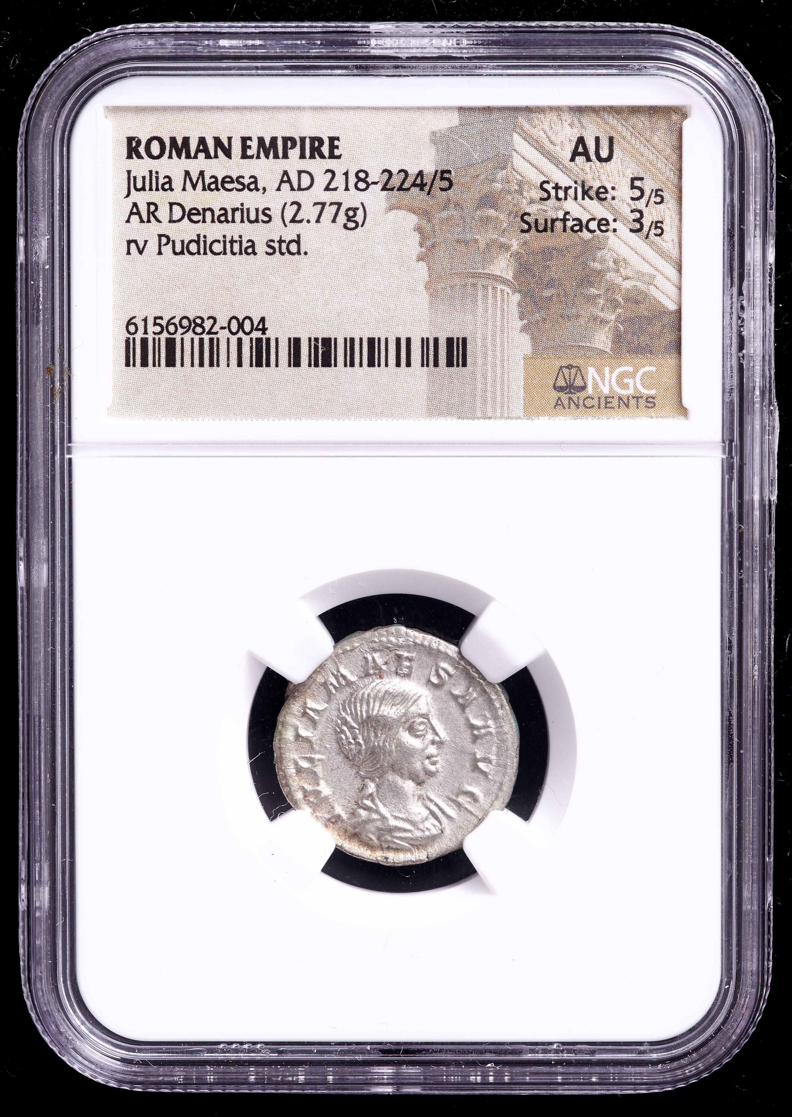 Julia Maesa (AD 218-224/5) Roman Empire AR Denarius Ancient Silver Coin (NGC AU) Strike:5/5 - Surface:3/5